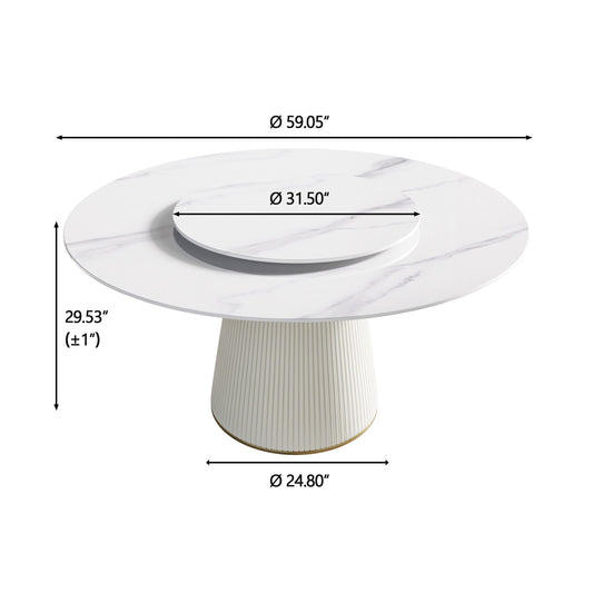 Modern Man-Made Stone Round Dining Table-Position For 6 People