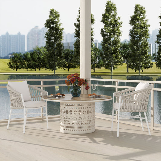 Maiden - Barrel Back Aluminum & Rope Outdoor Patio Dining Chair, Sunproof Olefin (Set of 2)