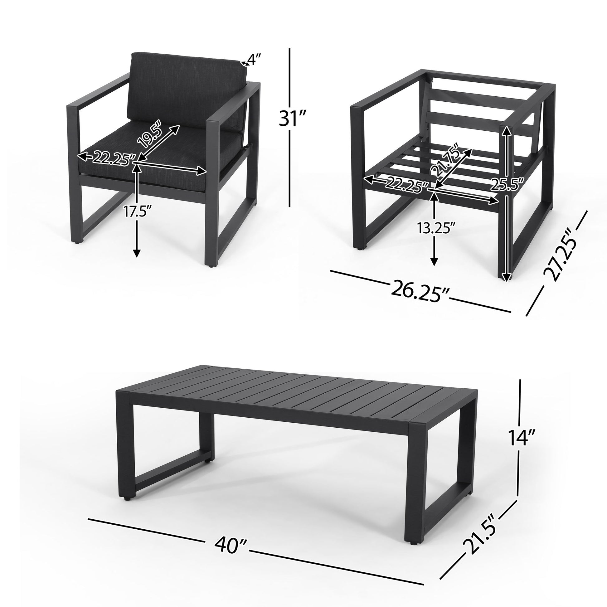 4 Piece Outdoor Chair Set With Weather Resistant Cushion - Dark Gray