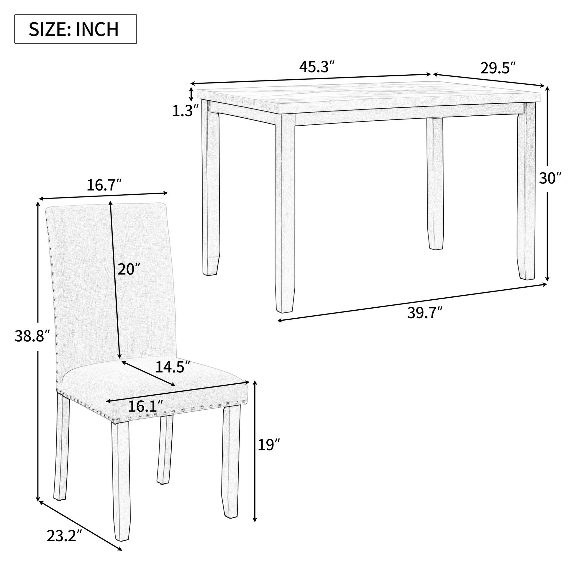 - 5 Piece Kitchen Dining Table Set: Includes a table and four chairs, perfect for family dining.