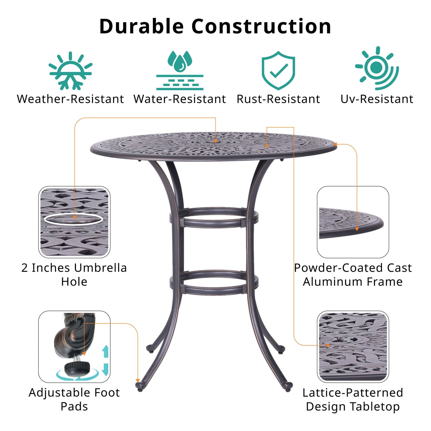 - Weather-Resistant Finish: Powder-coated finish protects from weather damage, ideal for any climate.
