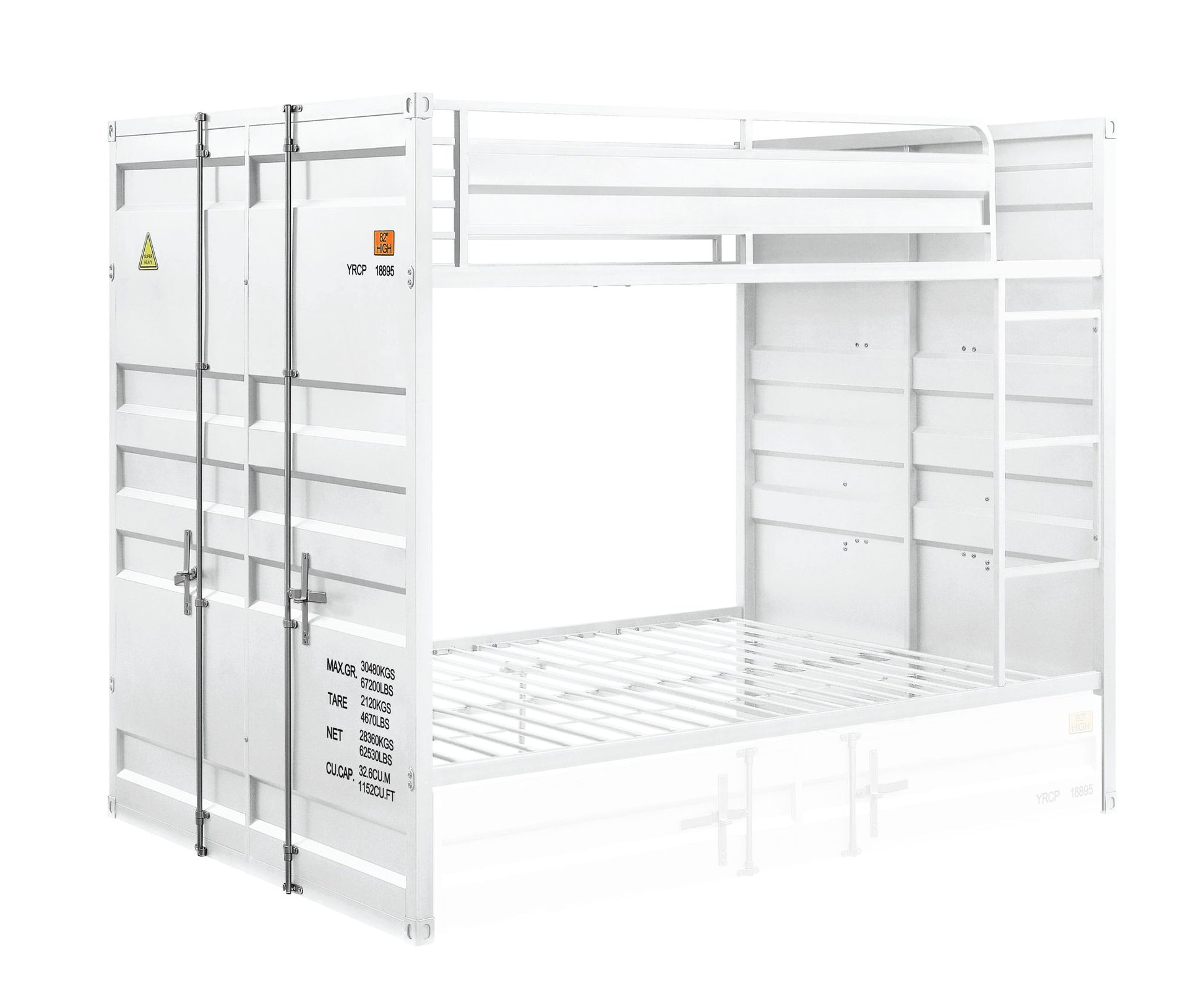 - Industrial Style: This full-over-full bunk bed boasts an industrial design, merging style with functionality. The sturdy metal construction ensures durability and a sleek white finish complements any modern or minimalist decor.