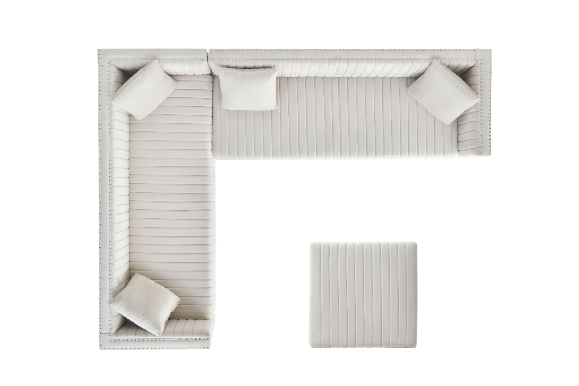 Contemporary Vertical Channel Tufted Velvet Sectional Sofa For Living Room Apartment With Ottoman And 4 Pillows