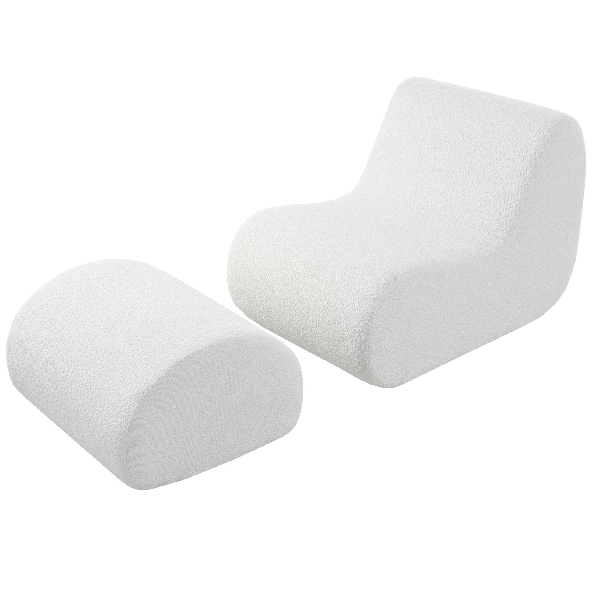 Curved Lounge Chair With Ottoman And High Resilience Foam - White