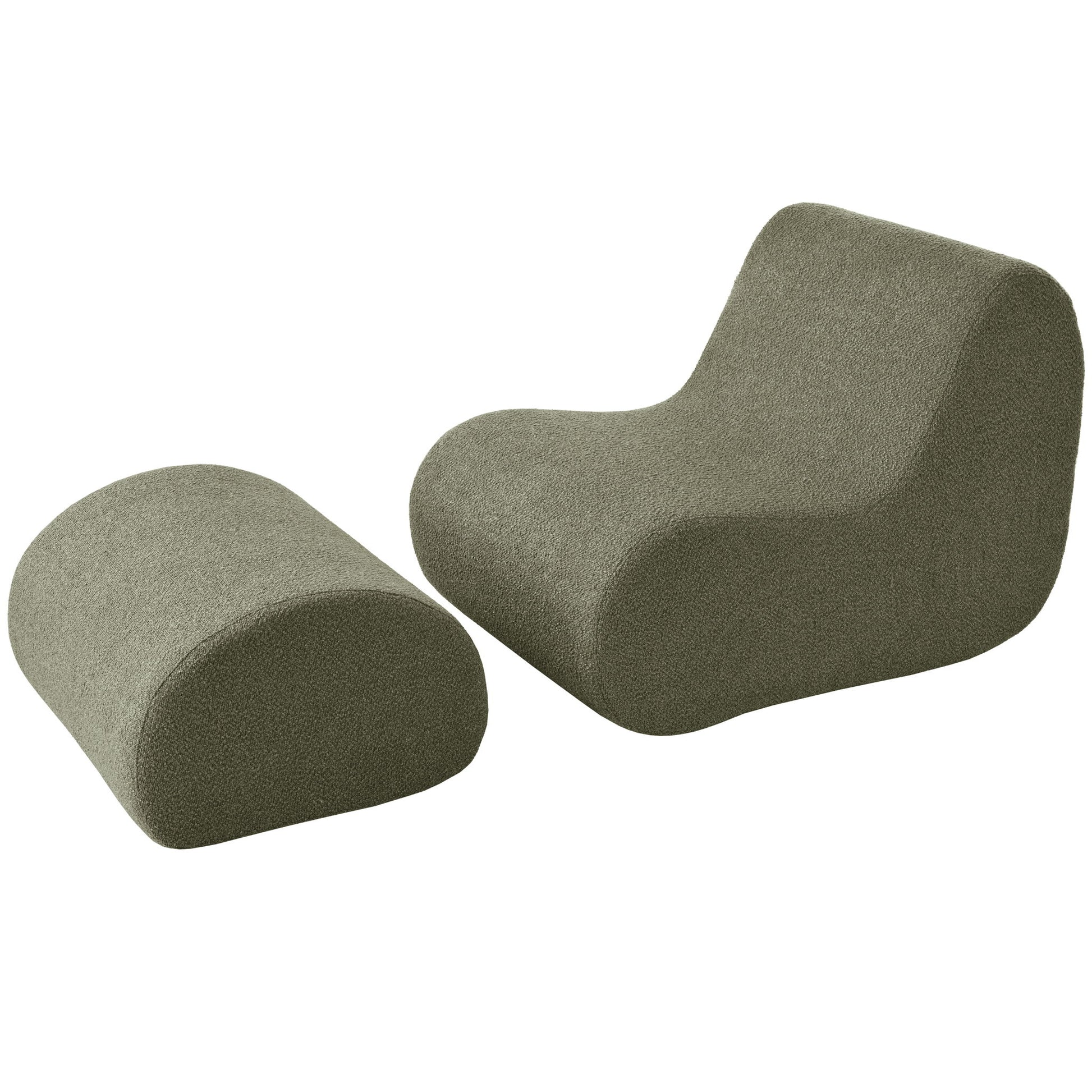 Curved Lounge Chair With Ottoman And High Resilience Foam - Green