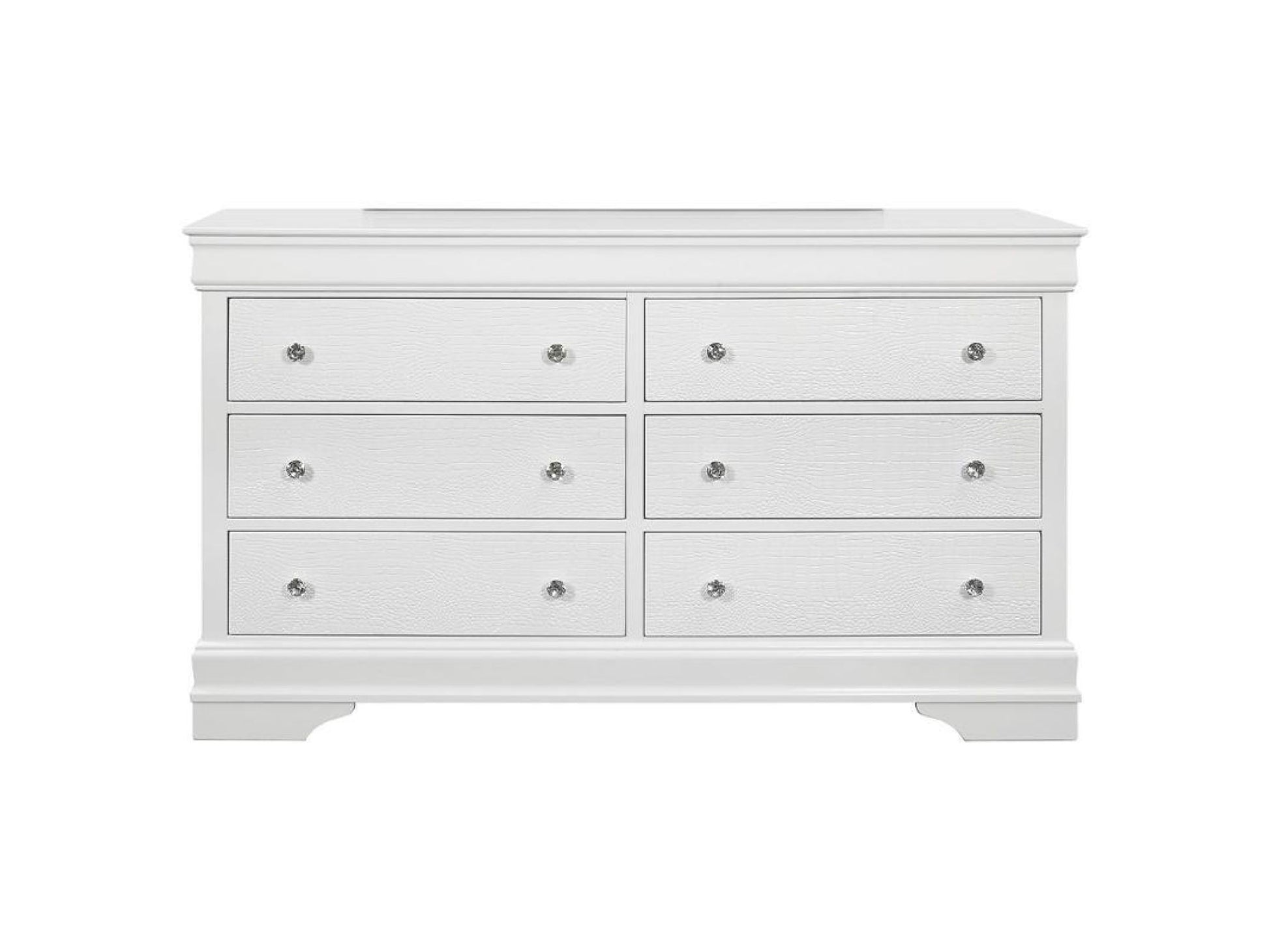 - 6 - Drawer Dresser, Crystal Knobs, Textured Detail