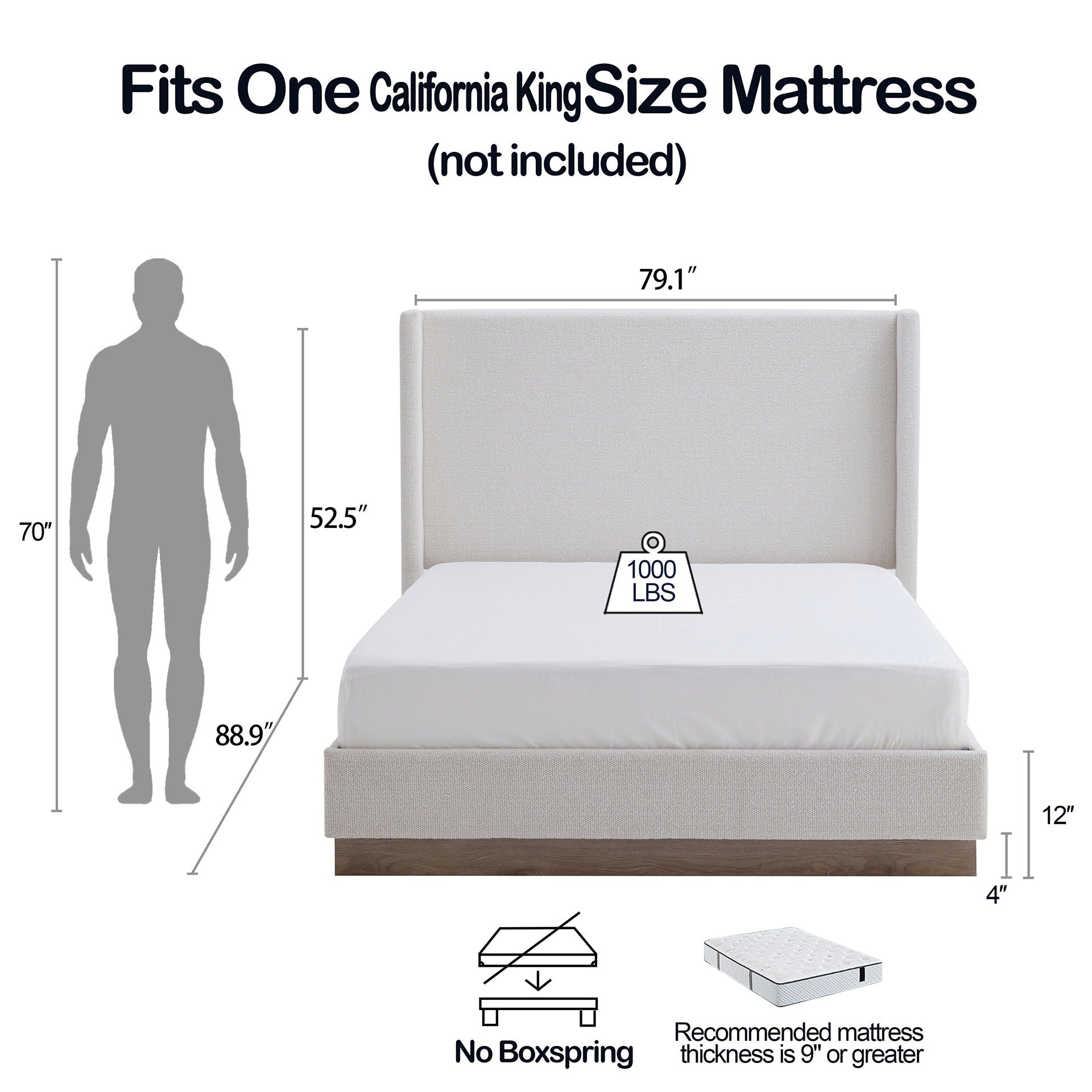 - Statement Headboard: The 53.1 tall headboard serves as a striking focal point in any bedroom.