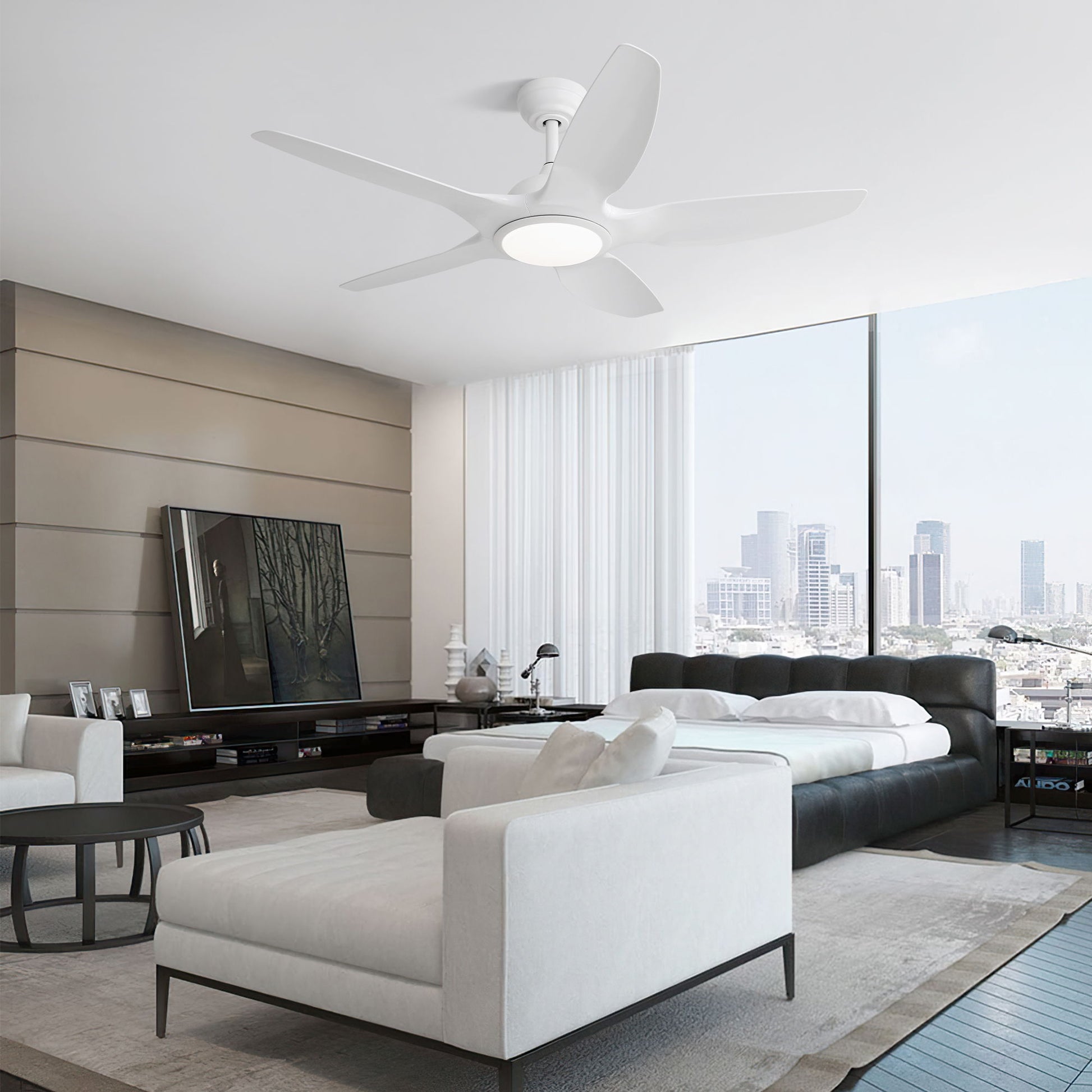 Indoor Ceiling Fan With 5 ABS Blades Remote Control Reversible Dc Motor For Living Room - White