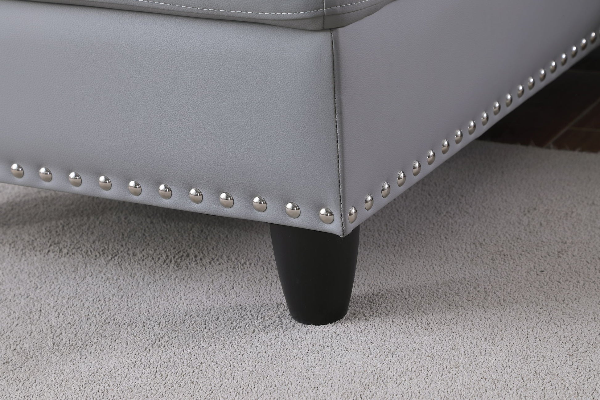- Nail Head Trims: The Irine Faux Leather Sectional Sofa features elegant nail head trims along the edges, adding a touch of sophistication and style to its overall appearance.