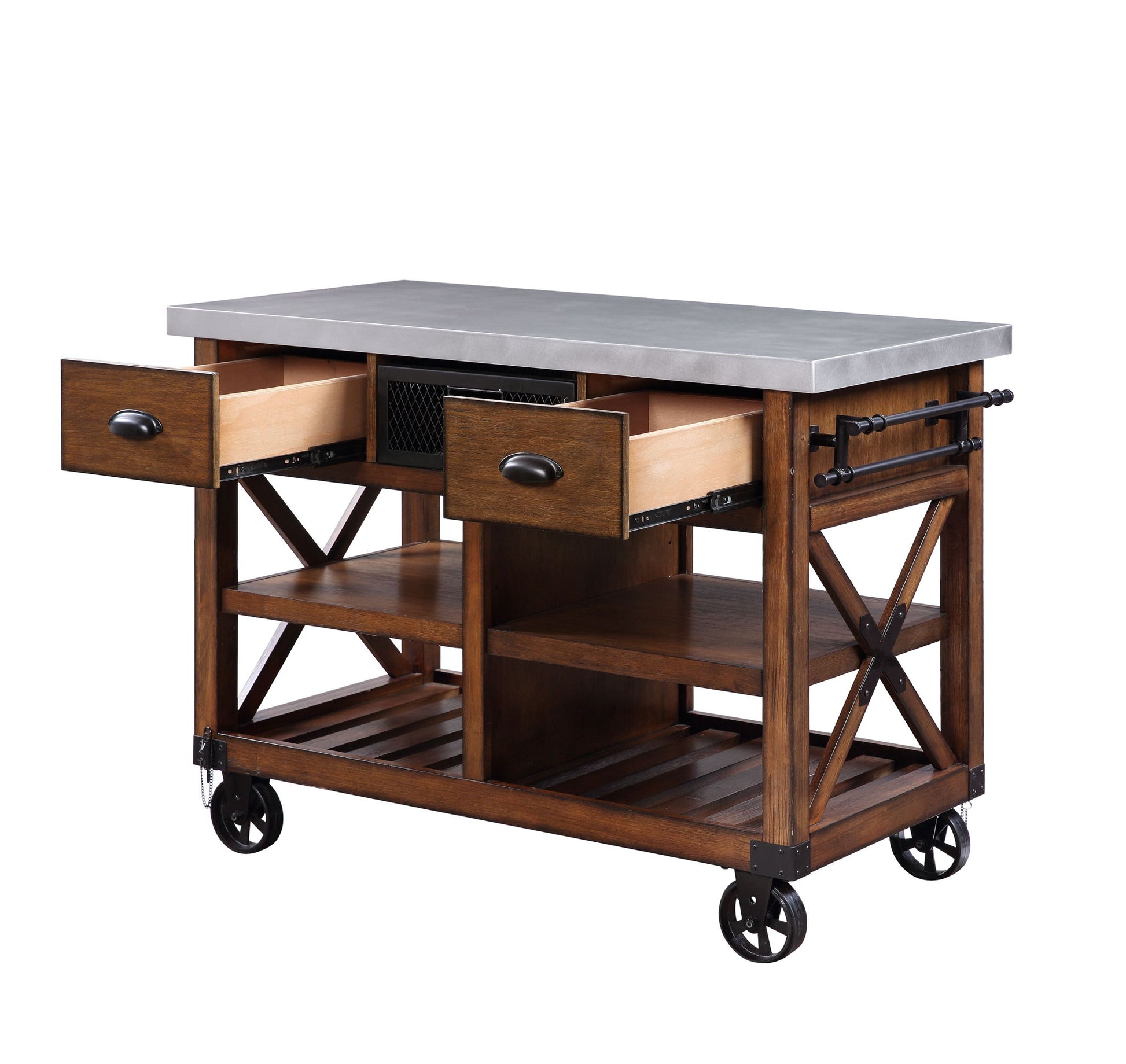 - Durable Construction: Made from a combination of cypress wood, MDF, and metal, with a faux concrete veneer top, this cart is built for durability and a sophisticated look. The solid back panel adds to its sturdiness.