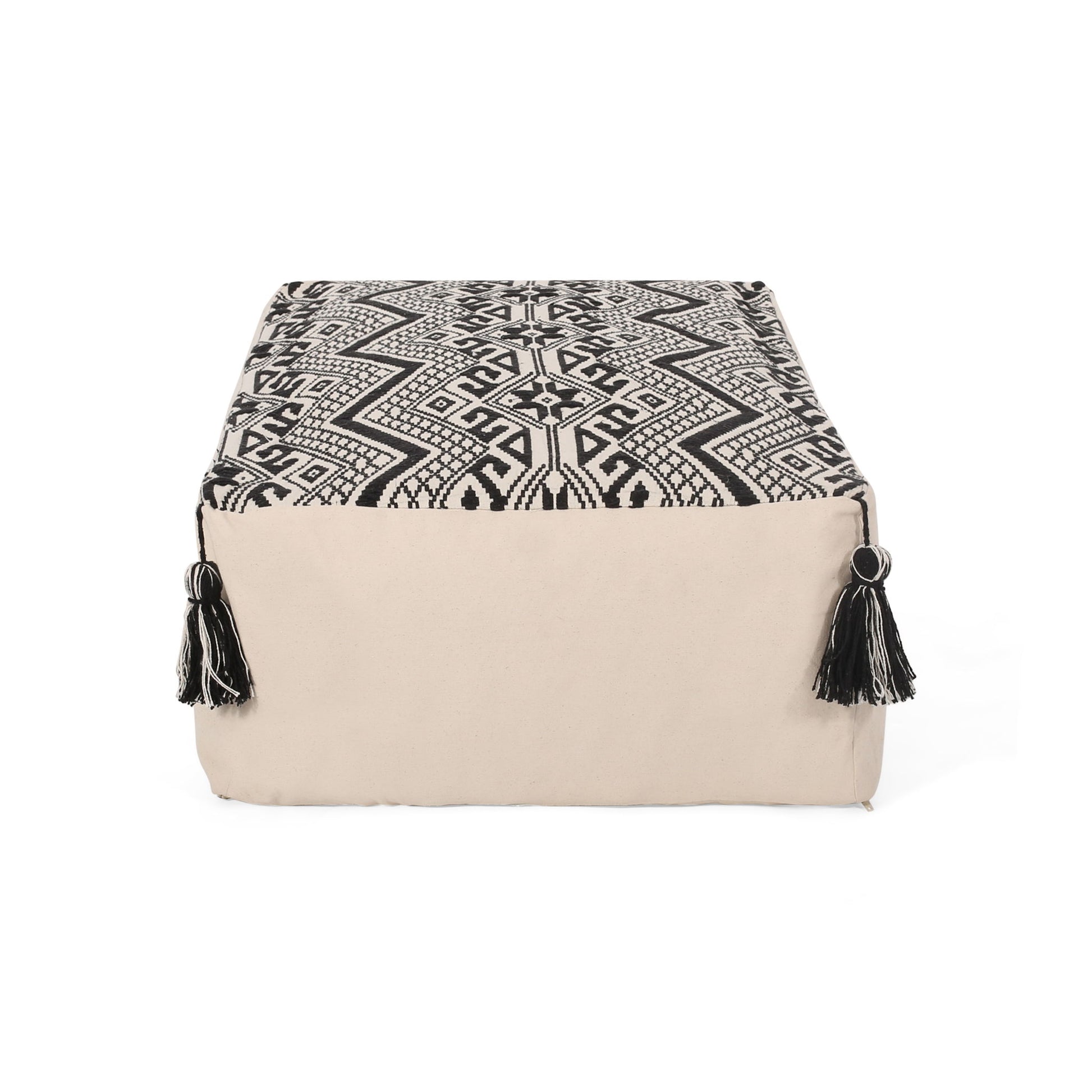 Kiki - Rectangular Pouf Ottoman Floor Cushion Natural - Black