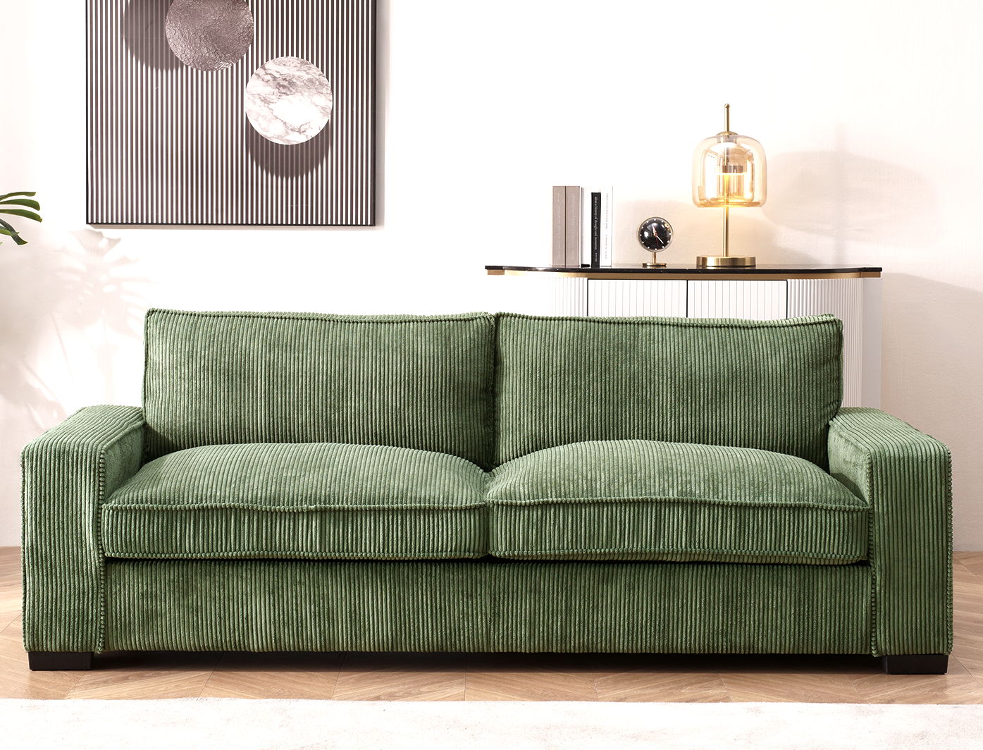 Luxe - Corduroy Sofa With Sleek Design, Spacious And Comfortable 3 Seater Couch - Green