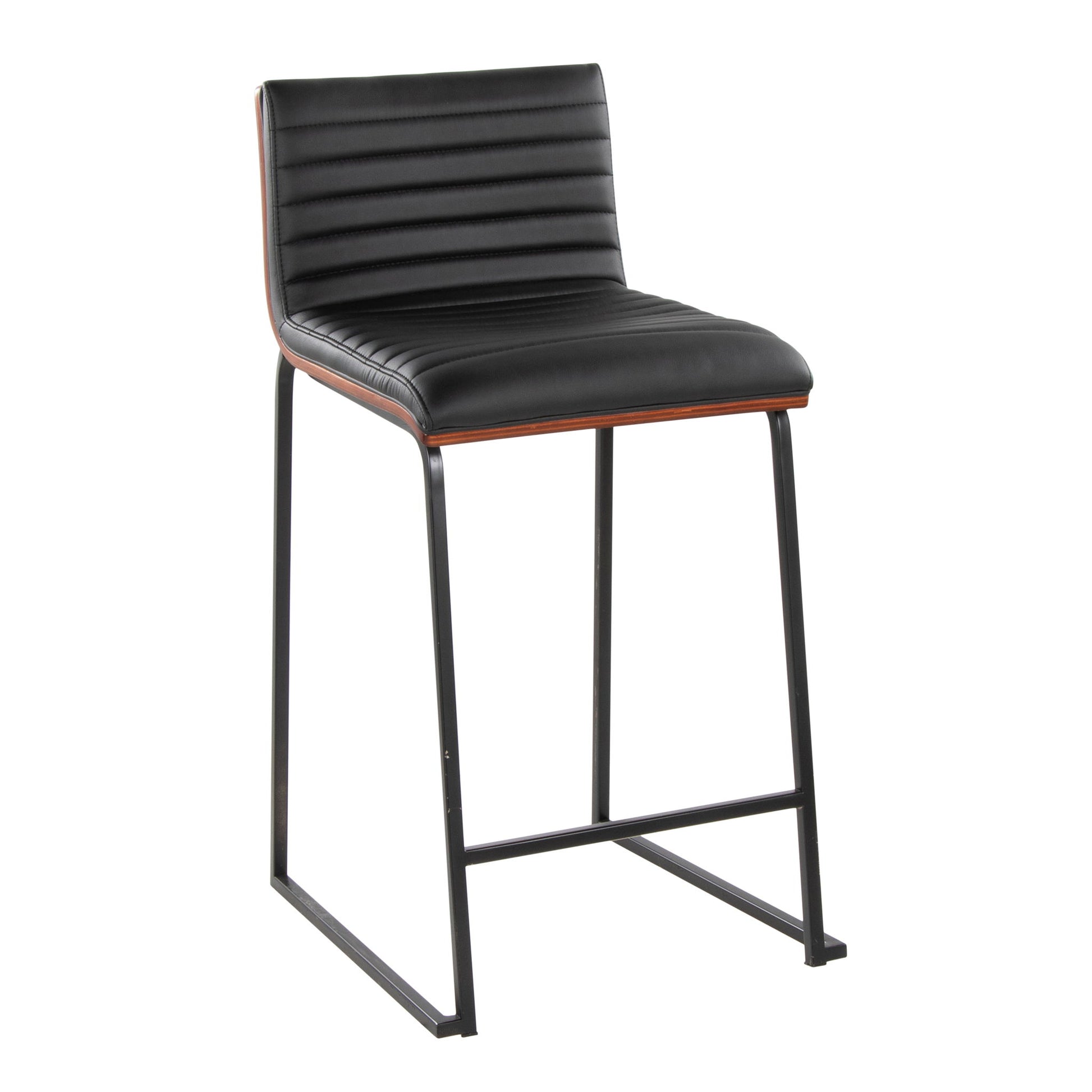 Mason Mara - Contemporary Fixed Height Counter Stool (Set of 2) - Black / Walnut / Black