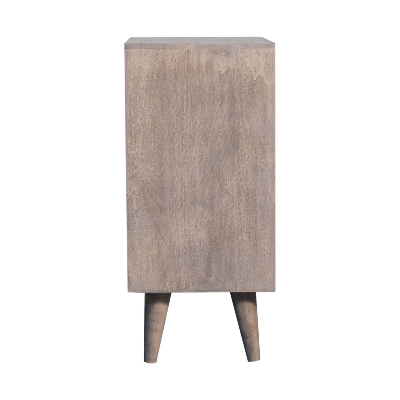 - Mini Pineapple Carved Cabinet - This mini cabinet has been constructed from 100% solid mango wood and has a fine stone finish. Its pineapple-carved design gives the product a unique twist and provides enough space with 2 doors that offer useful storage. Other features include shiny knobs and 4 Nordic style feet. This cabinet is the perfect addition to any home.