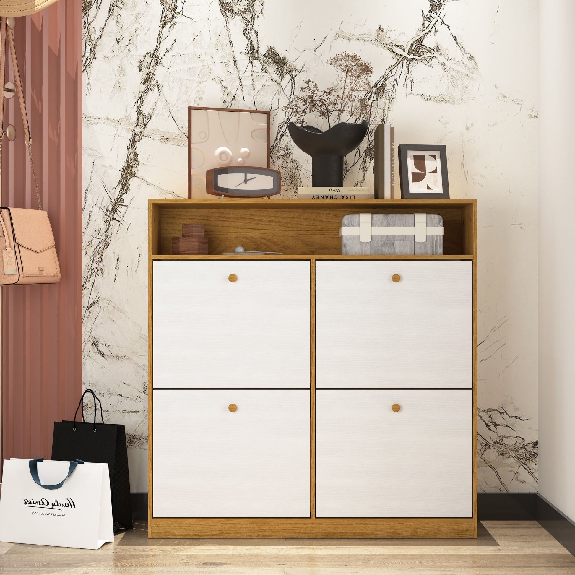 Modern Freestanding Shoe Storage Cabinet With 4 Flip Drawers