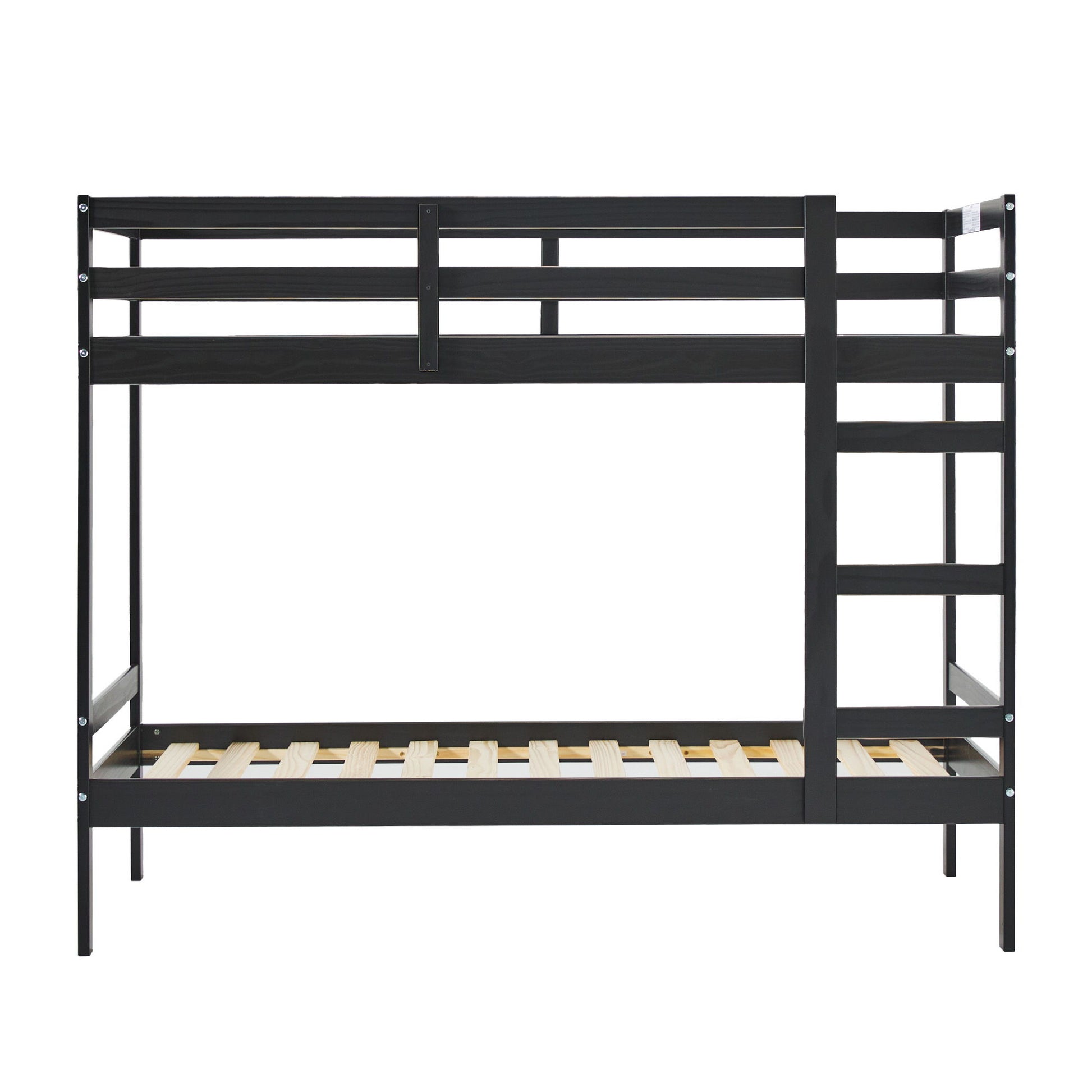 Modern Simple Solid Wood Twin Over Twin Bunk Bed - Black