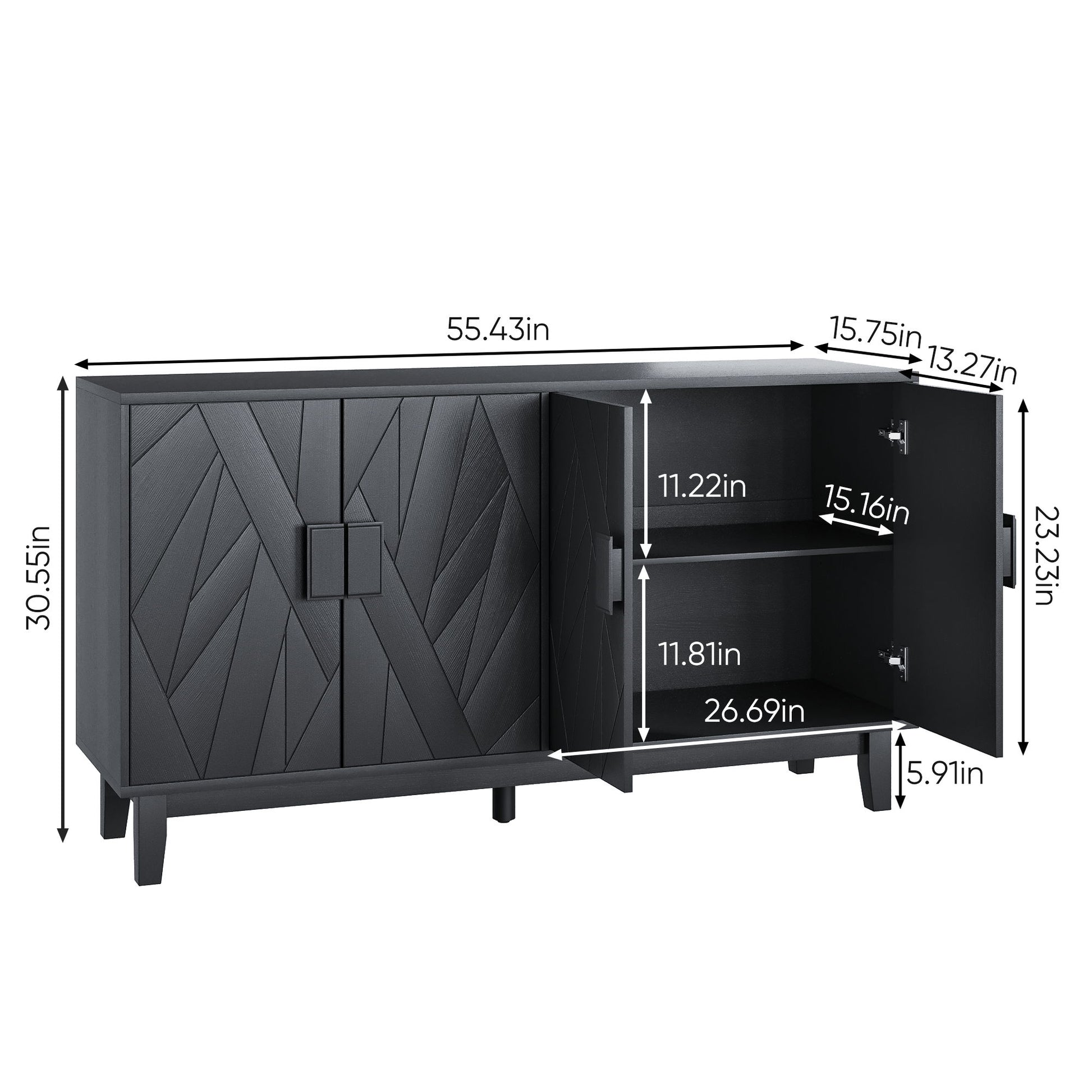 - Modern Decorative: The solid wood door of this cabinet adopts lrregular geometry design, with movable laminated boards inside and three adjustable ones. Its meticulous craftsmanship and modern design blend harmoniously, which can match any room style