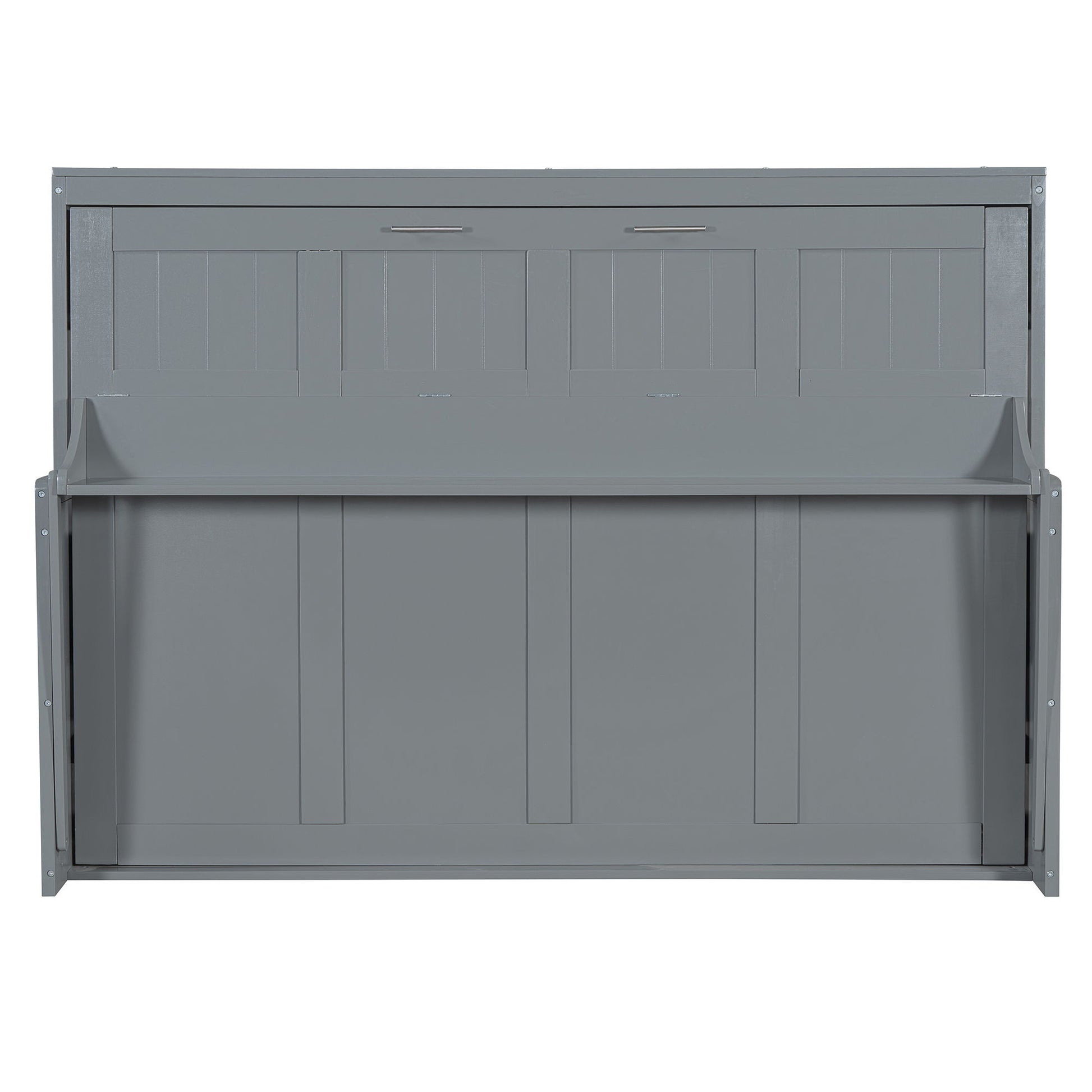 Queen Size Murphy Bed With Hydraulic Lift & Desk Design - Gray