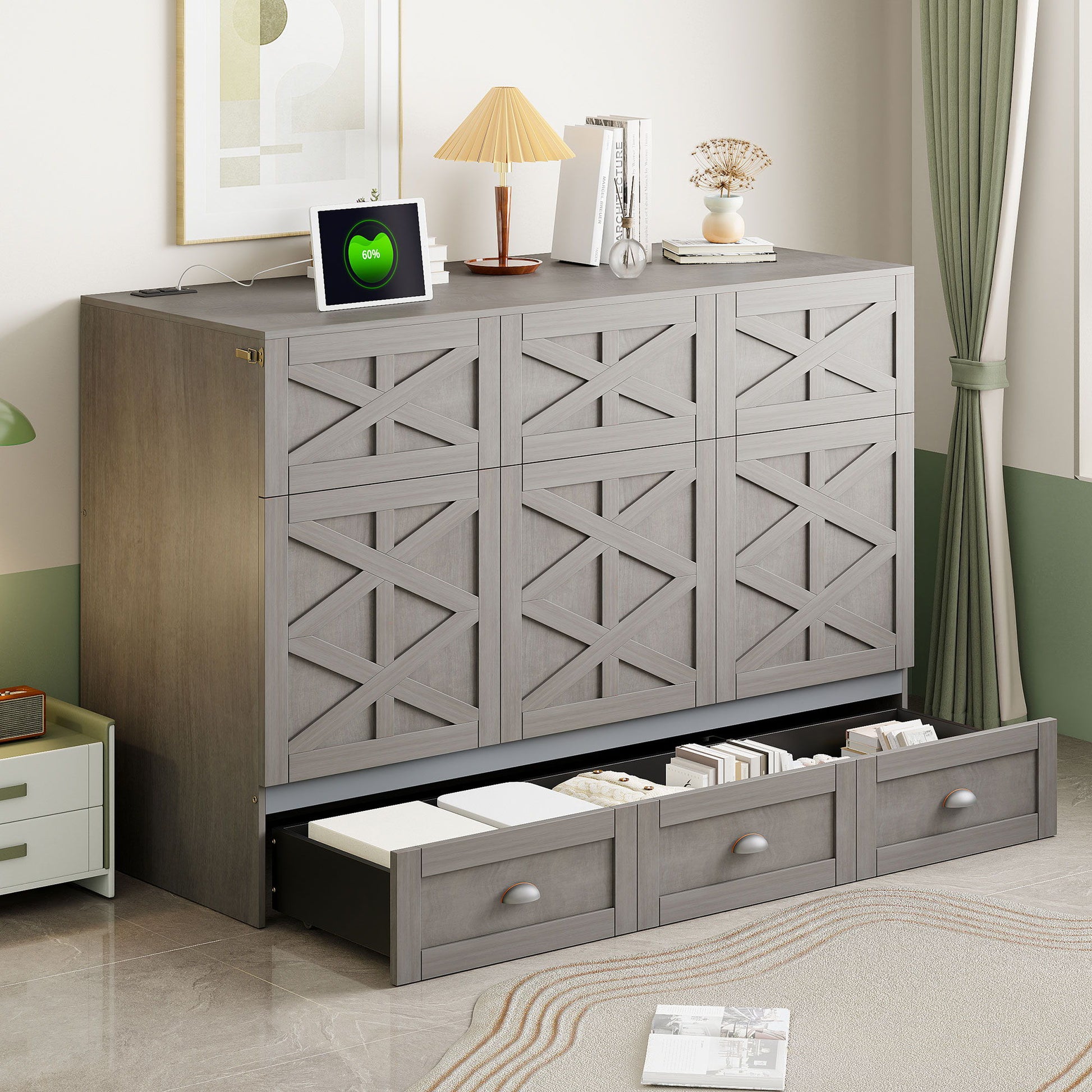 Full Size Murphy Bed With Large Drawers And USB Ports - Brushed Gray