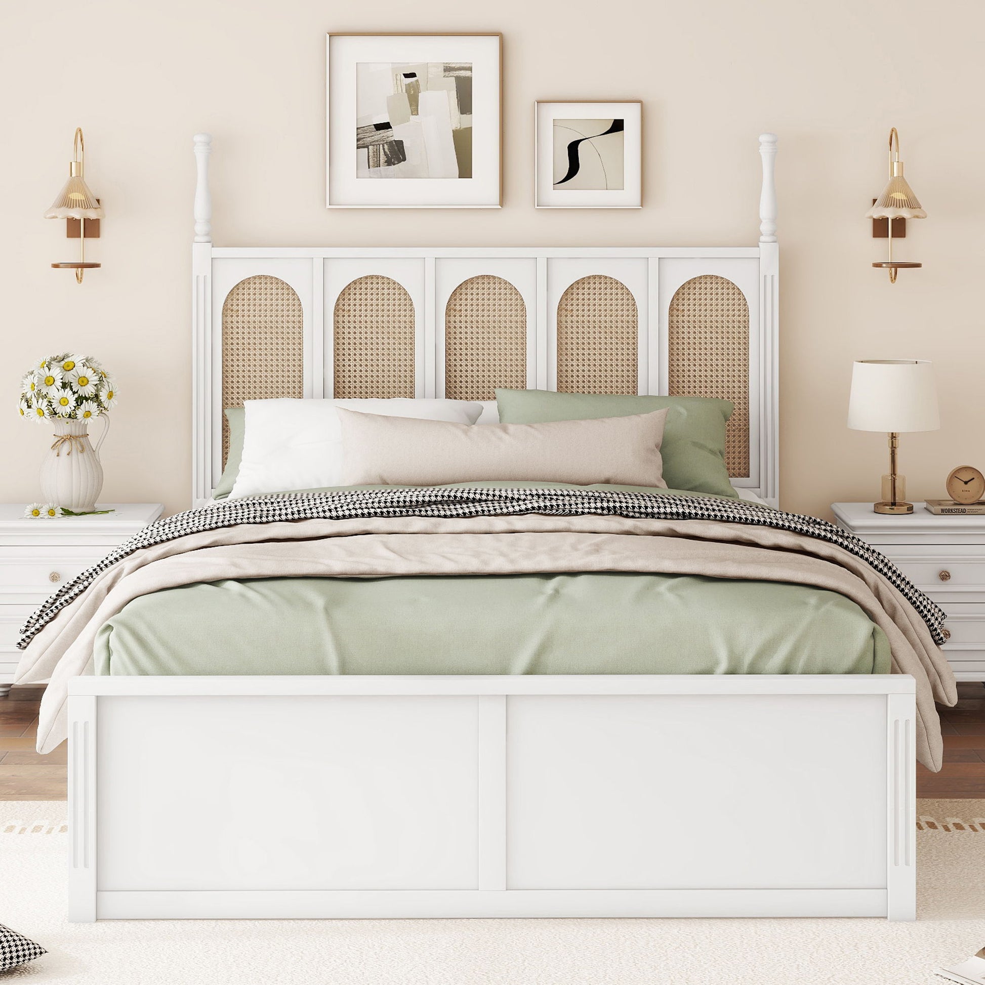 Superior Craftsmanship: Woven rattan is incorporated into the curving headboard, adding visual texture and appeal. The rounded design can protect your family from injury.