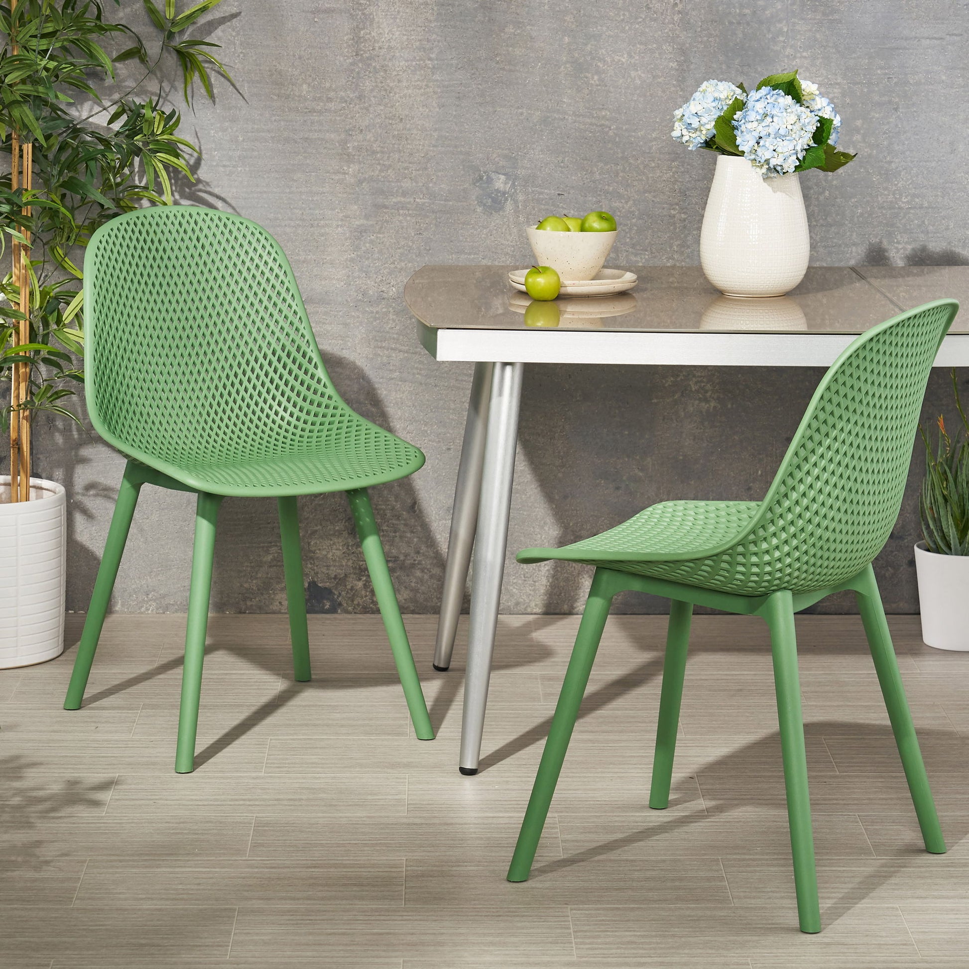 - MODERN DESIGN: With clean, precise lines, our dining chairs are the ideal modern accessory for your outdoor space. Finished with a perforated pattern designed for breathability, each chair not only offers a chic look but also provide incredible structure.