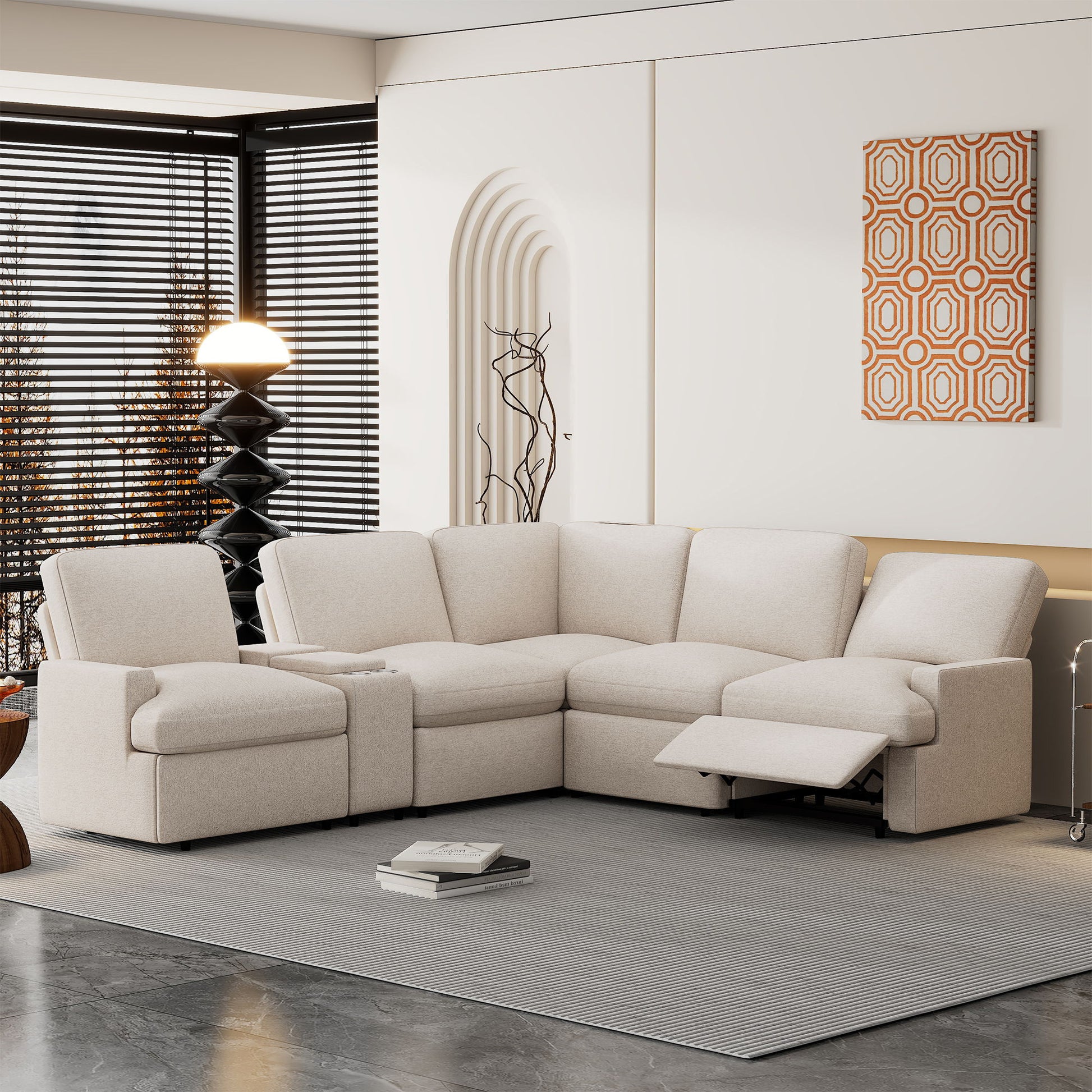 Power Recliner Corner Sofa Home Theater Reclining Sofa Sectional Couches With Storage Box, Cup Holders, USB Ports And Power Socket For Living Room - Beige