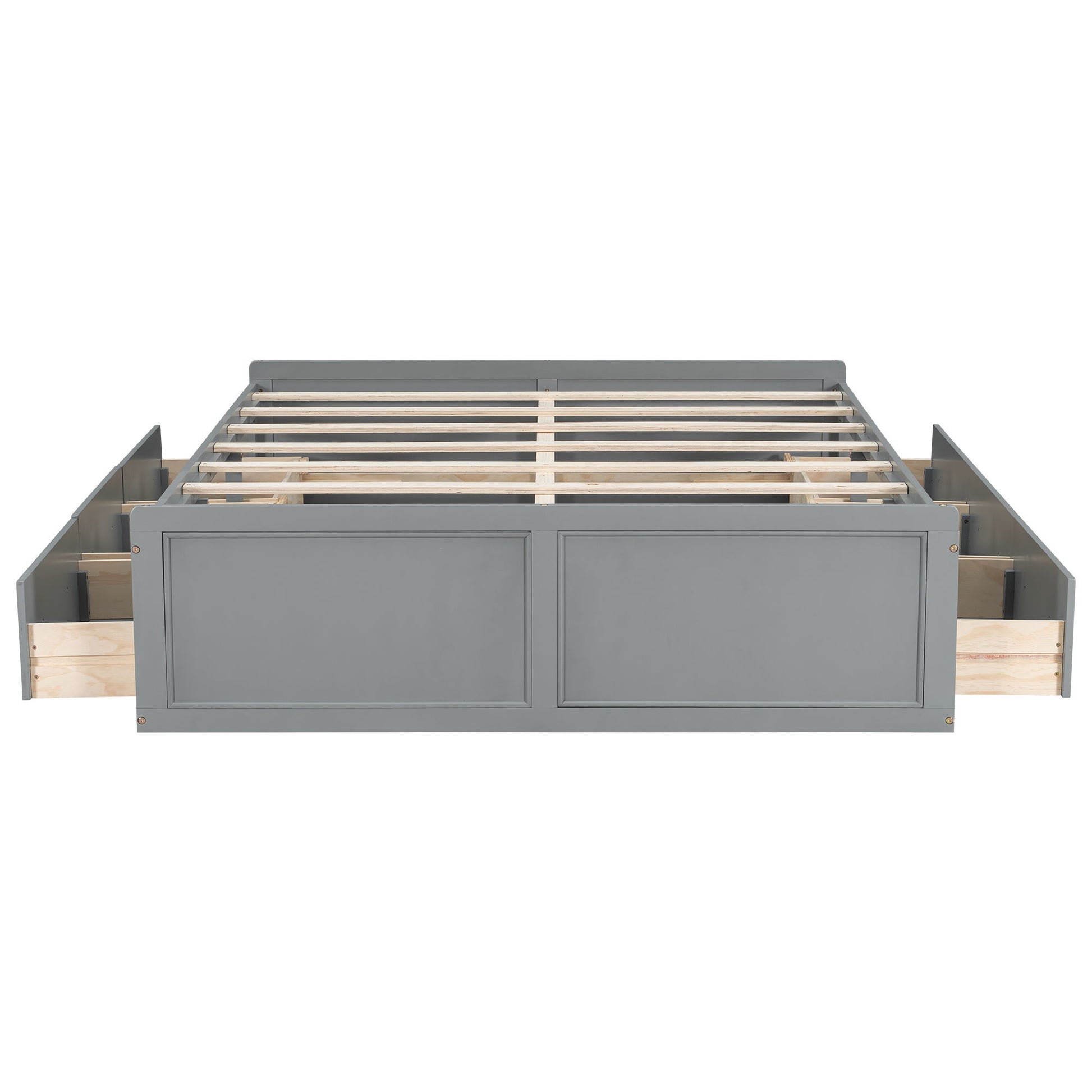 Queen Size Platform Bed Frame With 6 Drawers - Gray