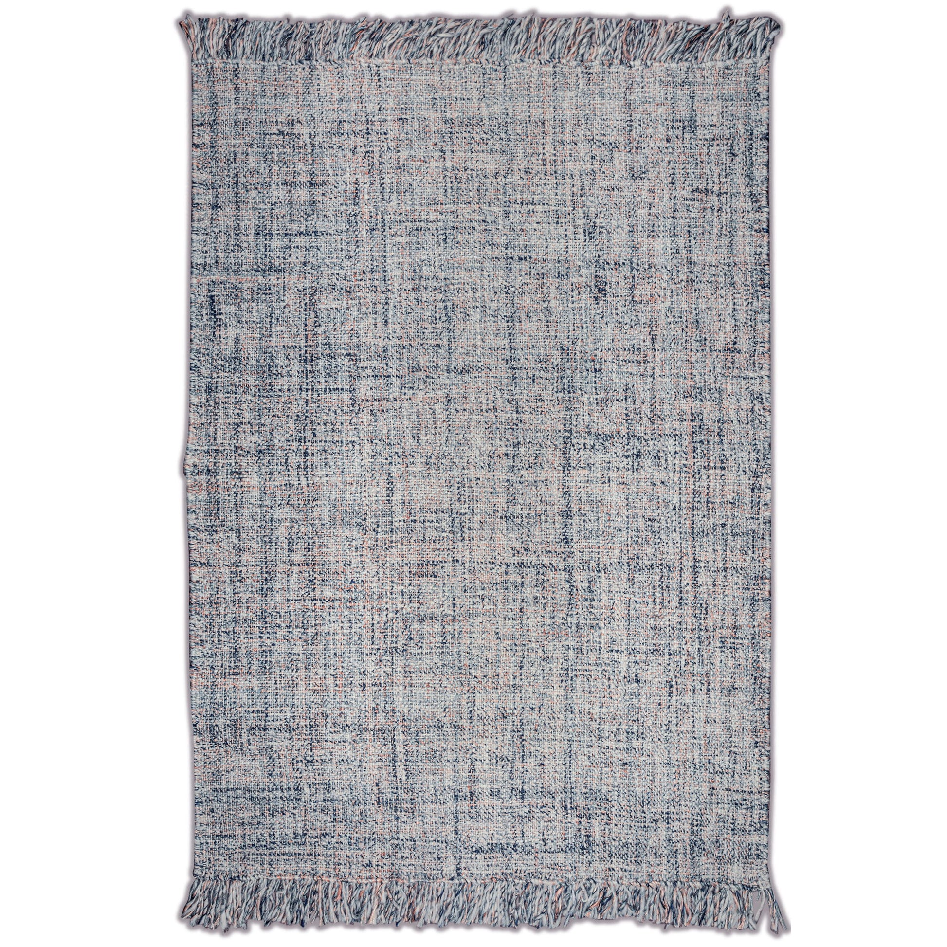 - Detailed with a woven pattern in cream beige and grey featuring a hand-knotted fringe