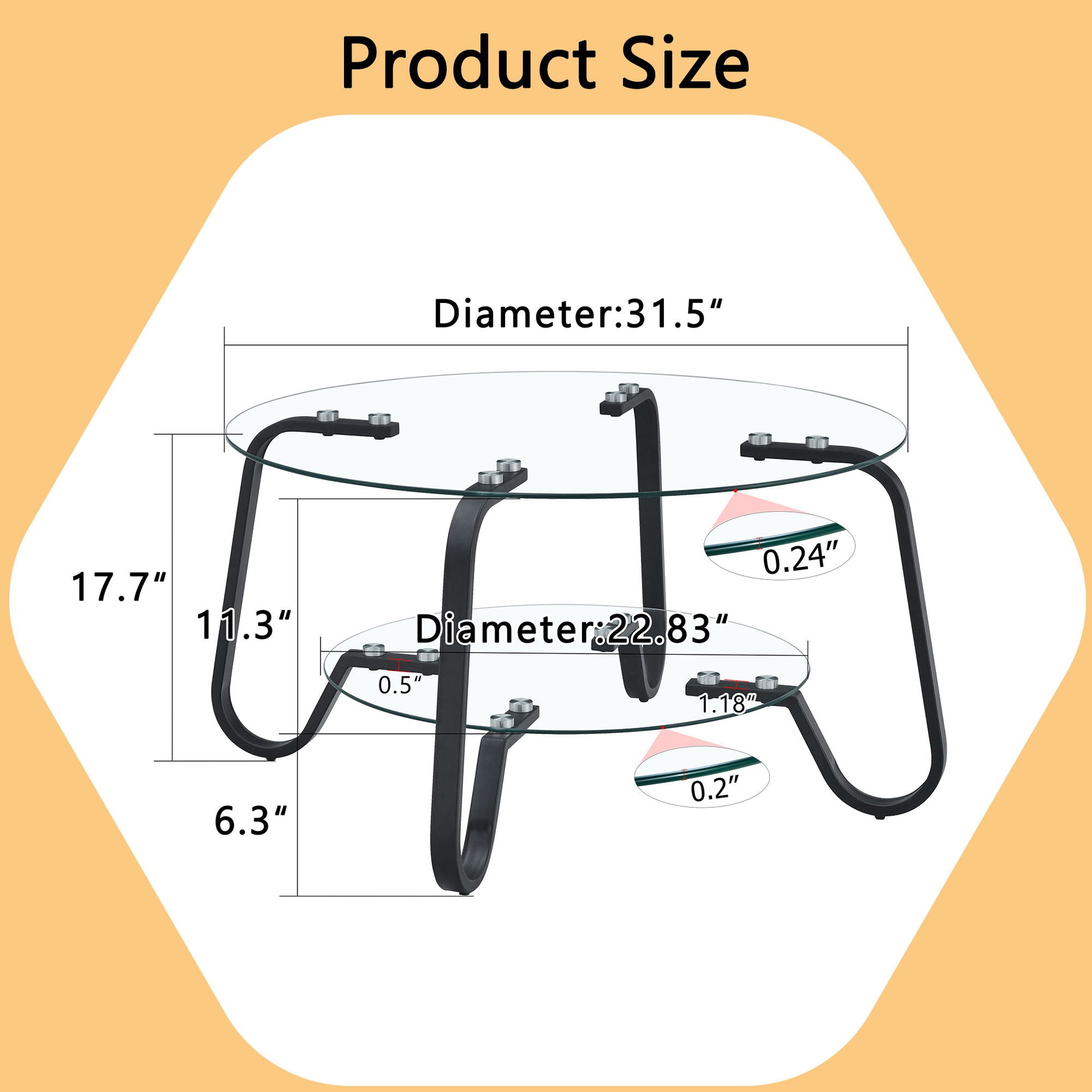 - Clear Glass Tabletop: The smooth glass top not only enhances visual appeal but also allows easy cleaning and clear display of items placed beneath.