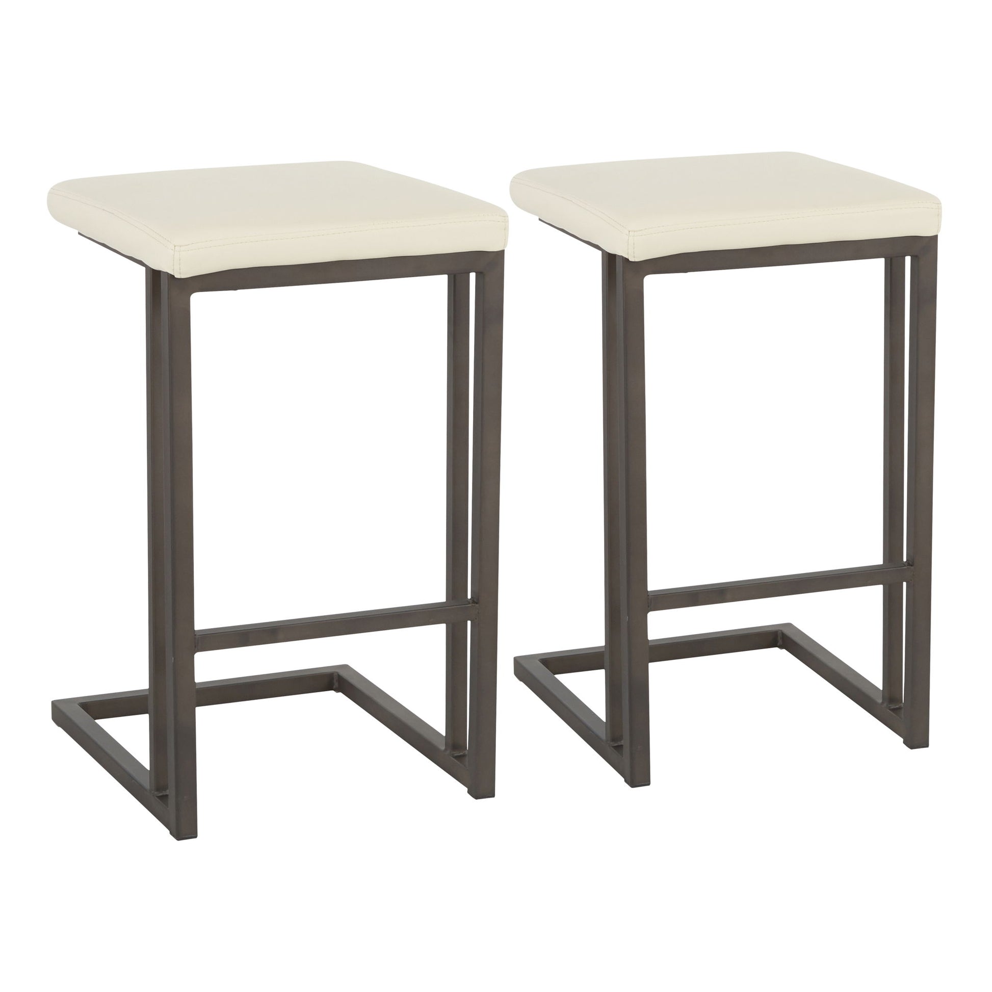 Roman - Industrial Counter Stool (Set of 2) - Antique Metal / Cream