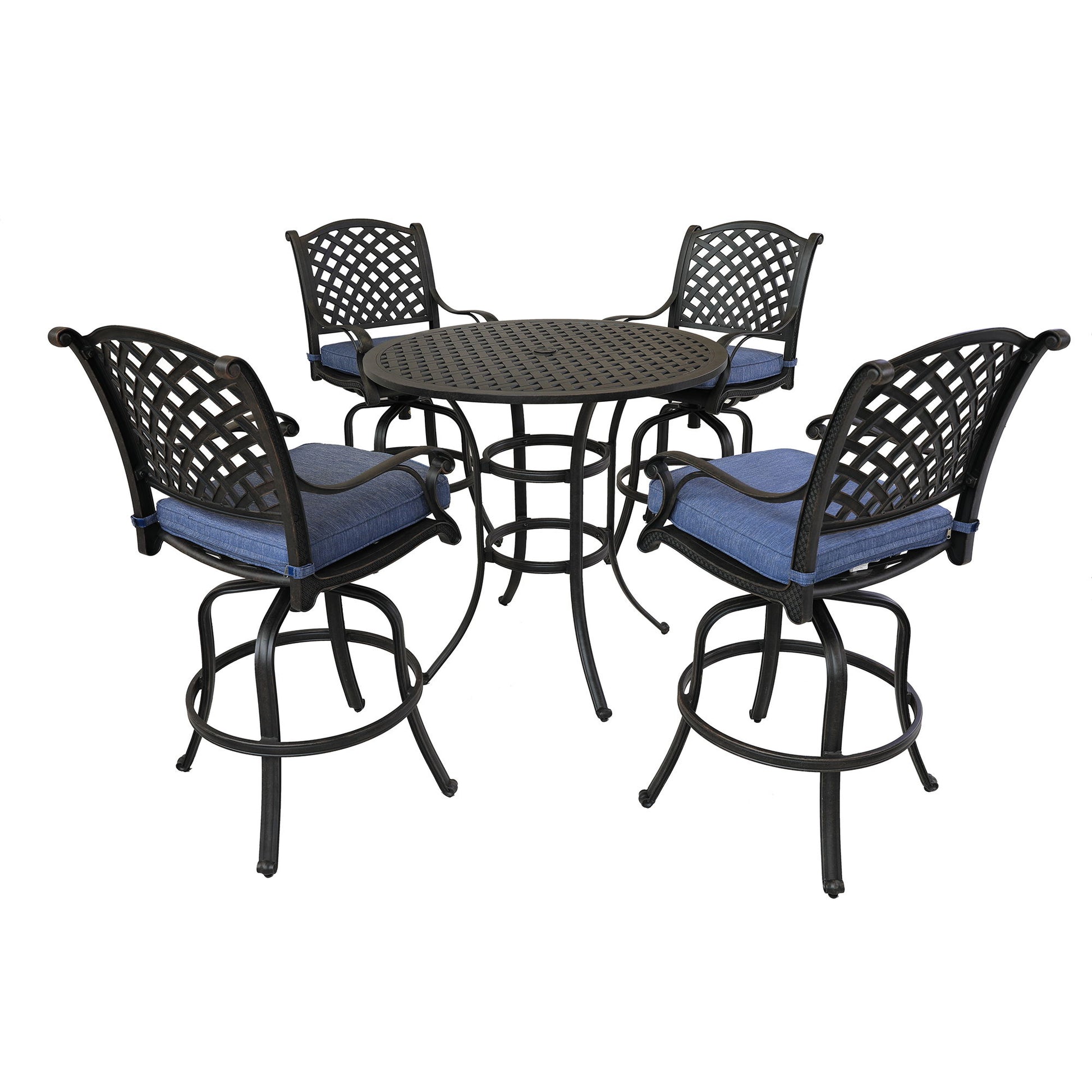 Round 4 Person 42" Long Aluminum Bar Height Dining Set With Cushions - Navy Blue