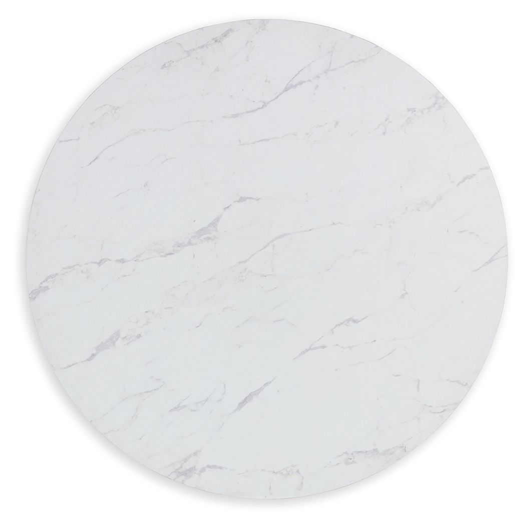 Clean lines meet cool curves with this dining table. Chunky round post legs and a natural finish lend a modern vibe, while a replicated white marble top completes the casual lifestyle design. What a delicious choice for a dining room update.