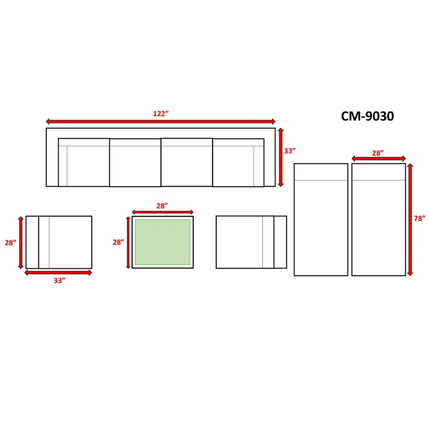 8 Person Rattan Wicker Patio Seating Group With Plush Cushions - Grey Mix