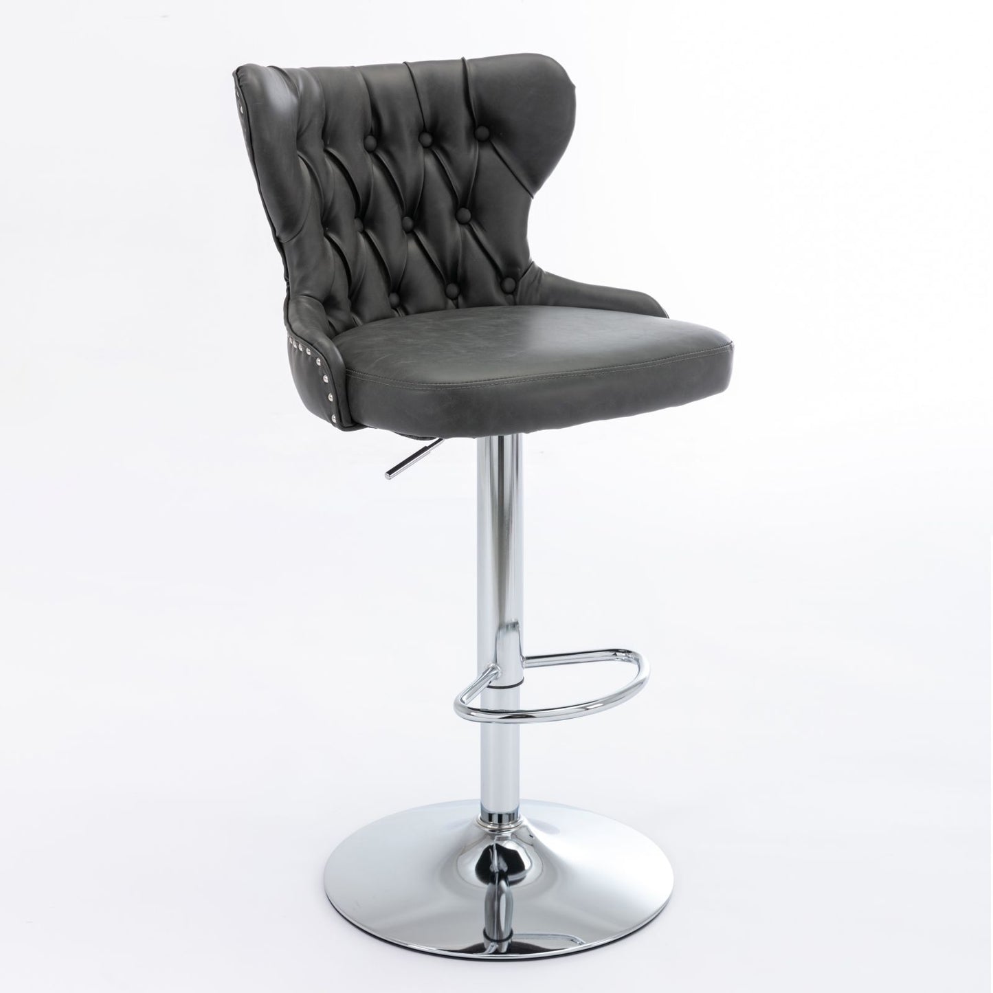 Swivel Barstools Adjusatble Seat Height From 25-33", Modern Upholstered Chrome Base Bar Stools With Backs Comfortable Tufted For Home Pub And Kitchen Island - Dark Gray