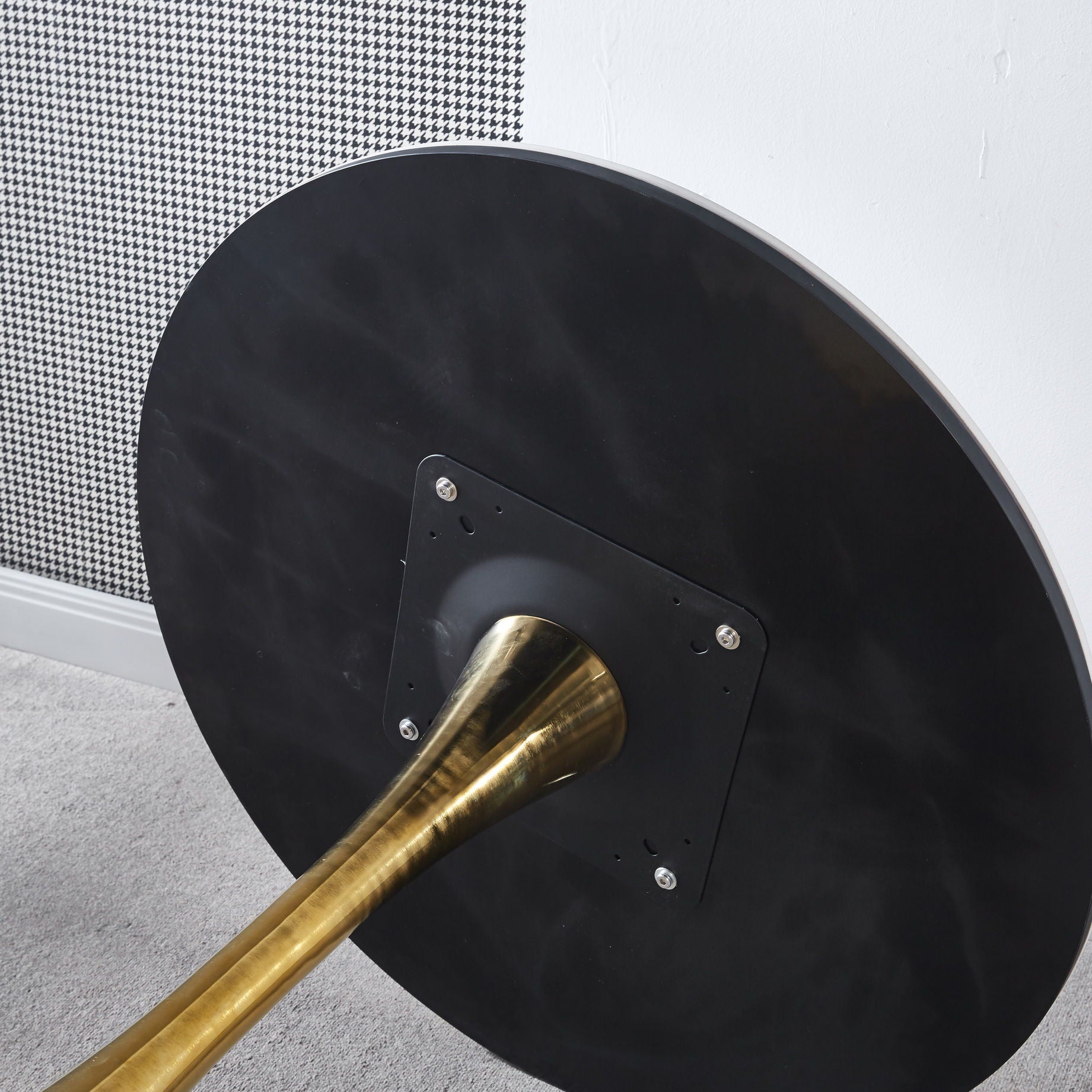 Tulip Table Mid-Century Dining Table For 2 - 4 People With Round MDF Table Top, Pedestal Dining Table, End Table Leisure Coffee Table, Ceramic And MDF Top - Golden / White
