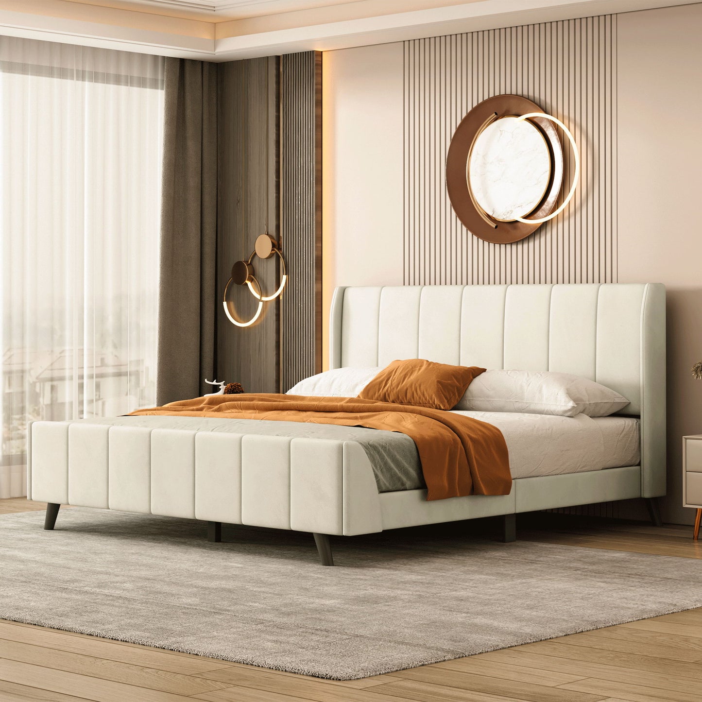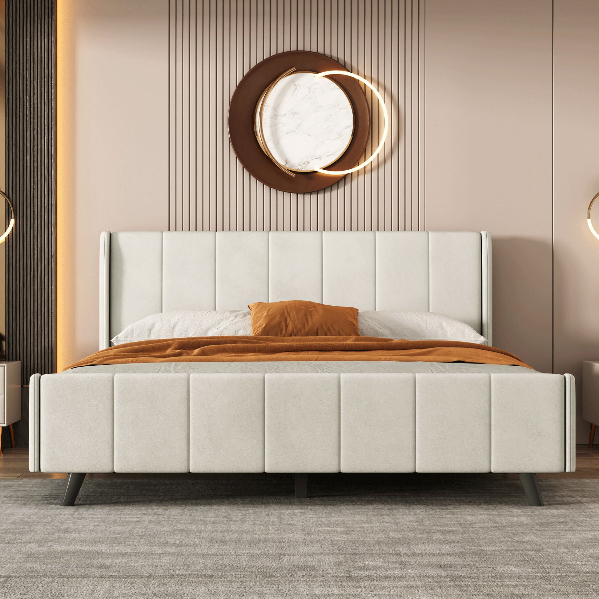 Queen Size Upholstered Platform Bed - Beige
