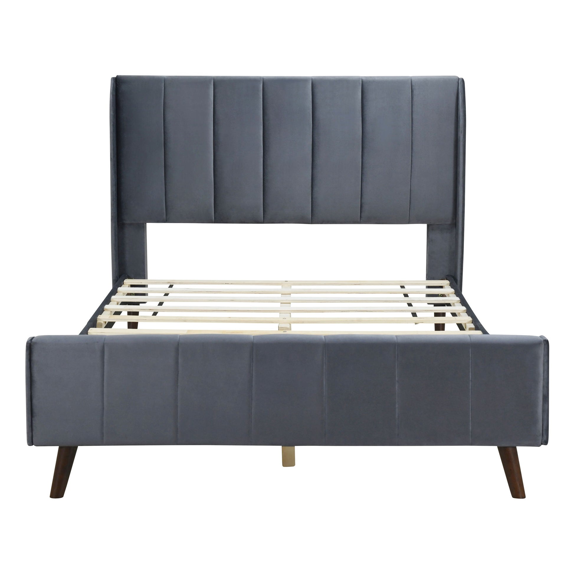 Upholstered in foam-filled velvet for an inviting feel, the included headboard boasts tufted detailing that adds a touch of visual texture. It gives any room a spark of style that's both modern and timeless. The supporting legs feature a fun design that enhances the overall layout of the room. The footboard is perfect for hanging clothes, thanks to its three-dimensional shape. This platform bed is hollow underneath, maximizing vertical space for storage. You can place games or puzzles under the bed.