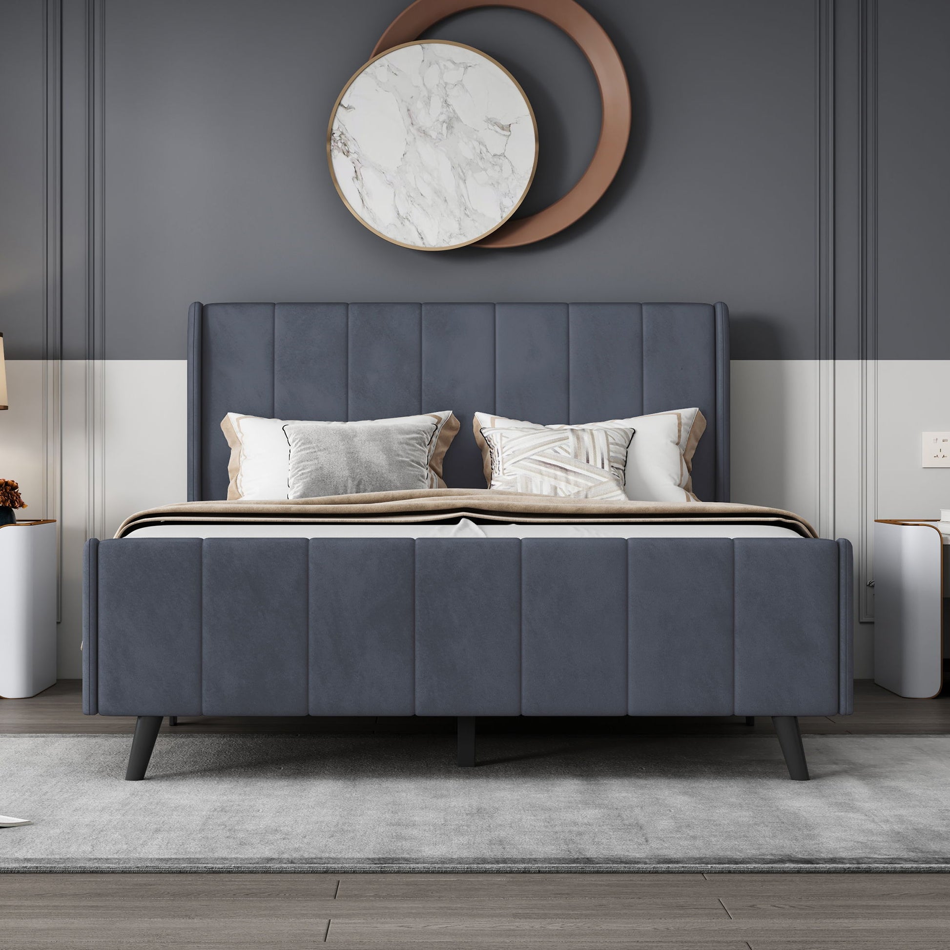 Full Size Upholstered Platform Bed - Gray
