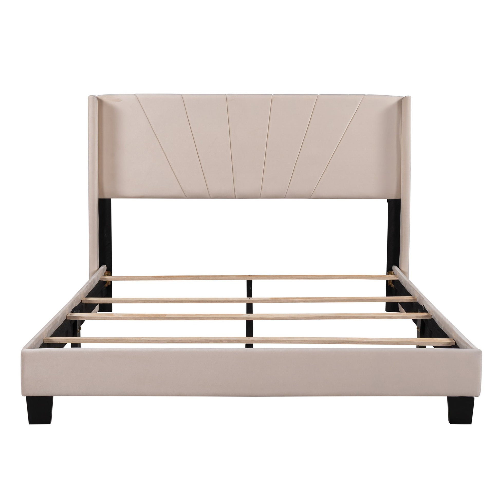 Queen Size Upholstered Platform Bed, Box Spring Needed - Beige