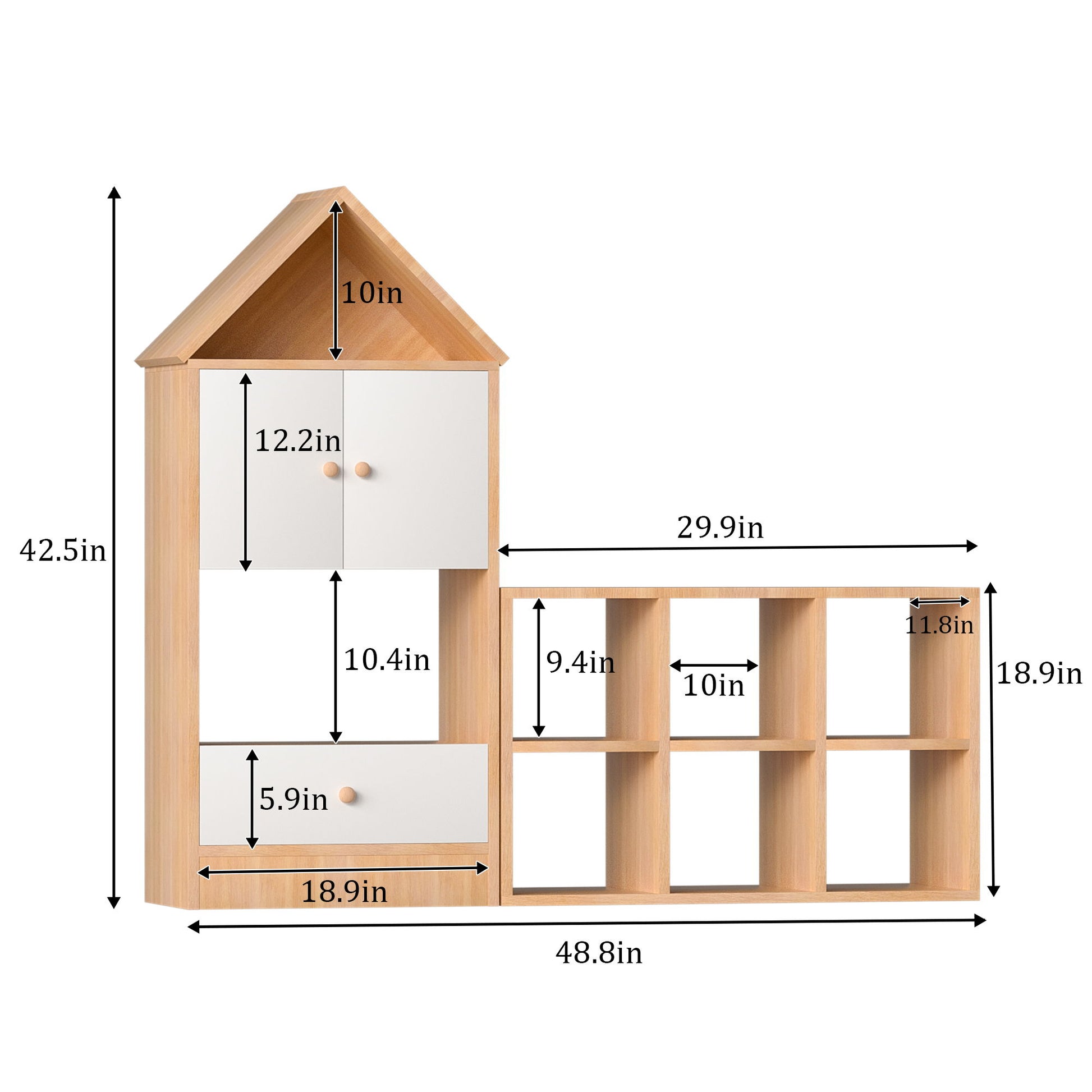 Versatile Children's Bookshelf With House Shaped Design Multifunctional Storage - Burly Wood