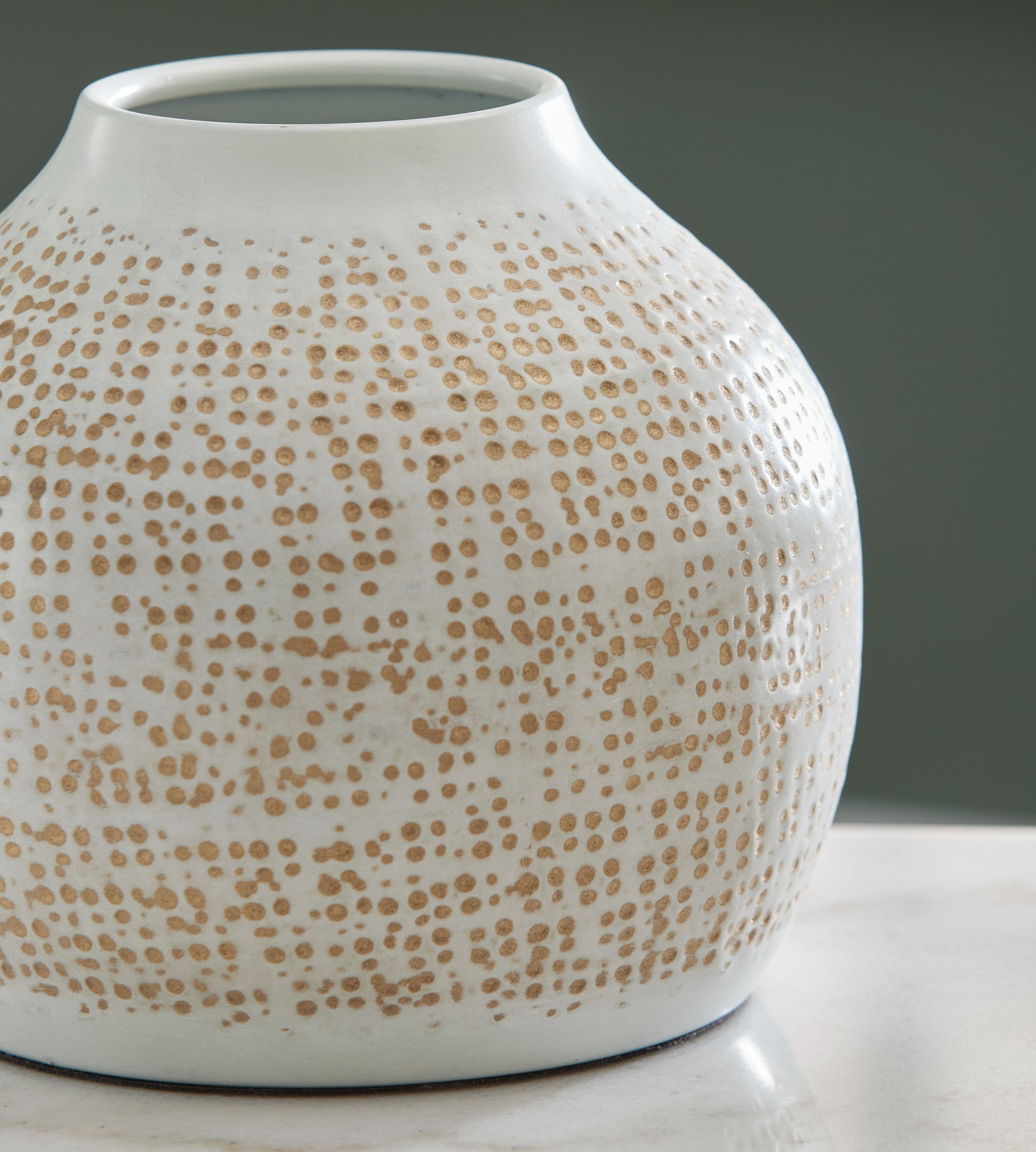 Elevate your decor with this striking accessory set. Its sleek white vases, adorned with delicate goldtone accents, are perfect for displaying your favorite faux blooms or standing alone as minimalist statements. They're paired with bold geometric sculptures, creating a dynamic and sophisticated look for modern spaces.