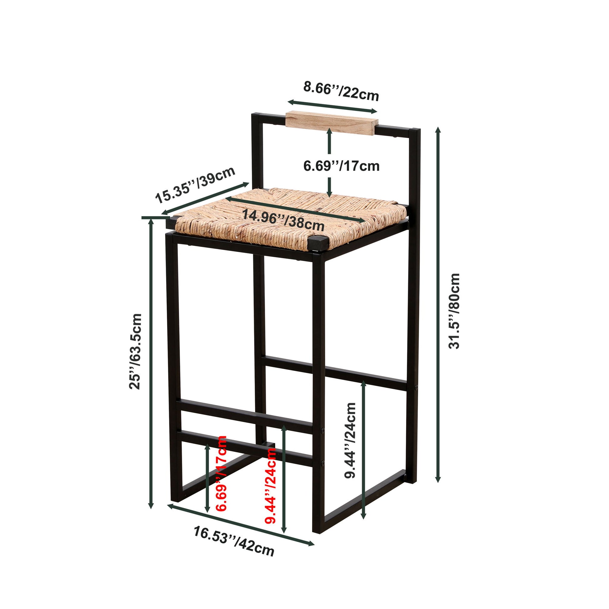 Water Hyacinth Woven Bar Stools With Back Support, Counter Height Dining Chairs (Set of 2) - Natural