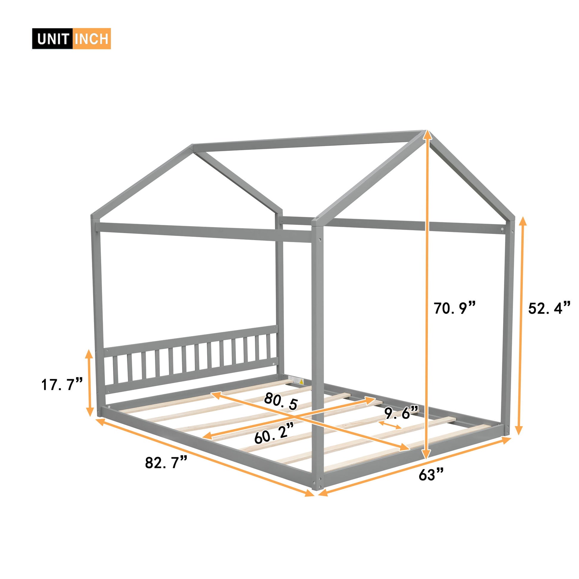 Queen Size House Bed With Headboard - Gray