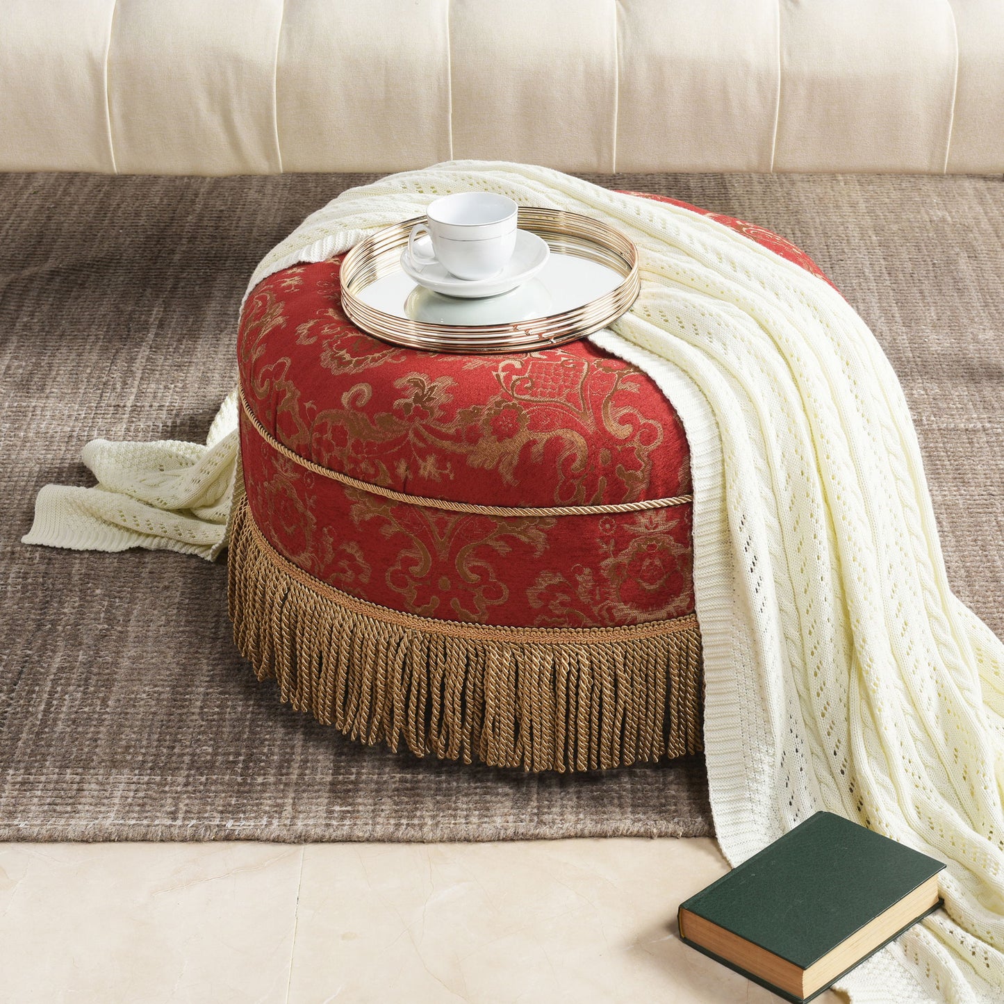 - Vintage Design Elements: The ottoman is enhanced with a tassel rope bullion fringe and a lightly buttoned seat, adding a touch of vintage flair and elegance.