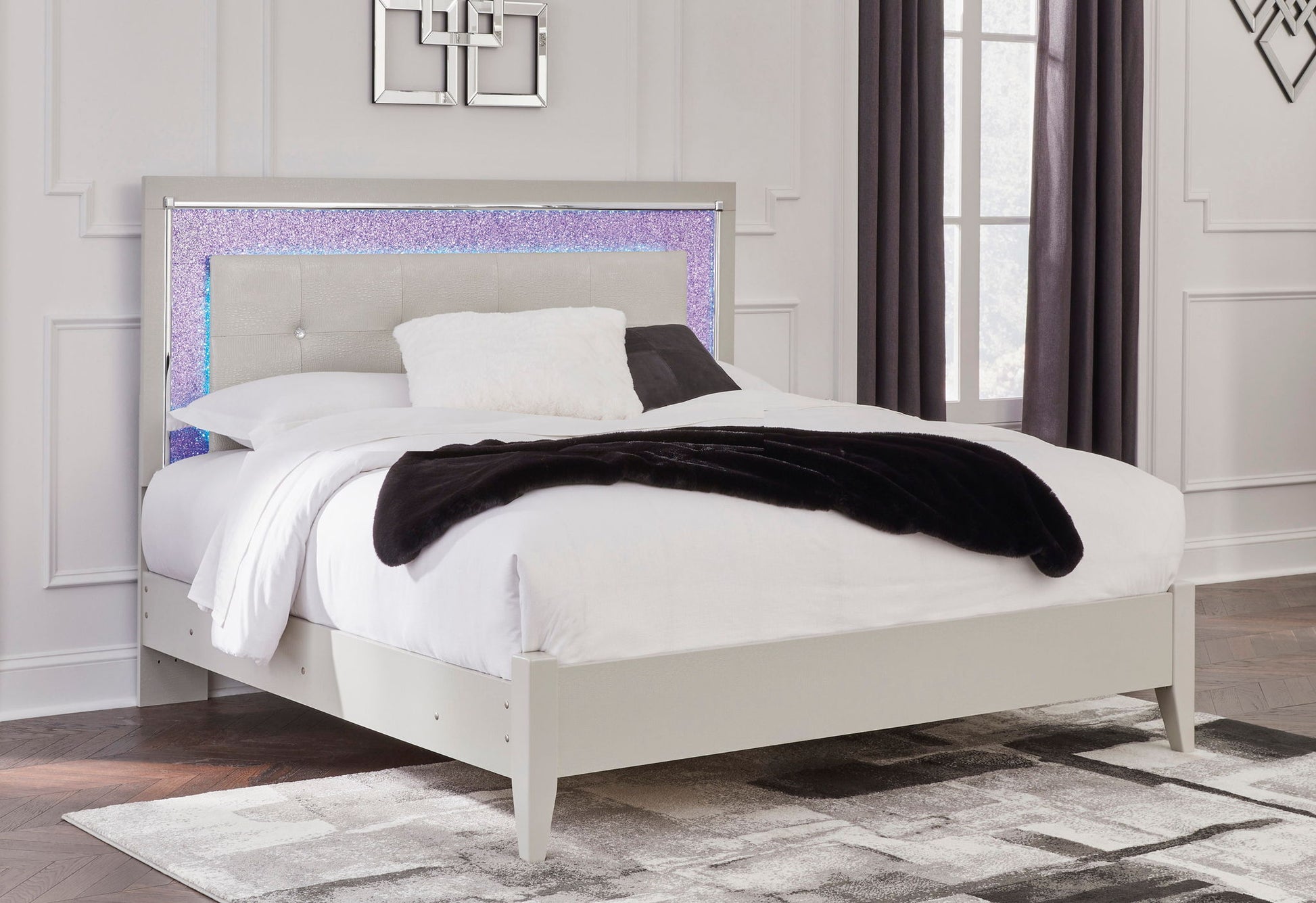 Zyniden - Queen Upholstered Panel Bed - Silver